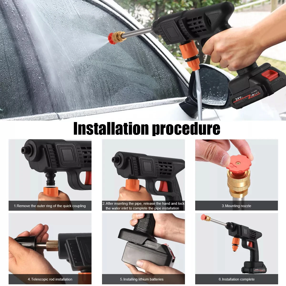 【Easy to install and use】 Assembling a battery powered cordless high-pressure cleaning machine is very simple, just quickly install the water inlet and small nozzle, the trigger is easy to pull, and everyone can easily use it