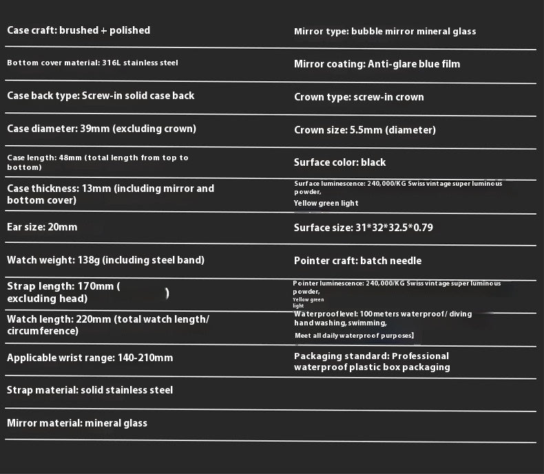316L Stainless Steel Automatic Mechanical Watch