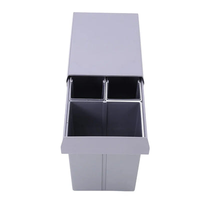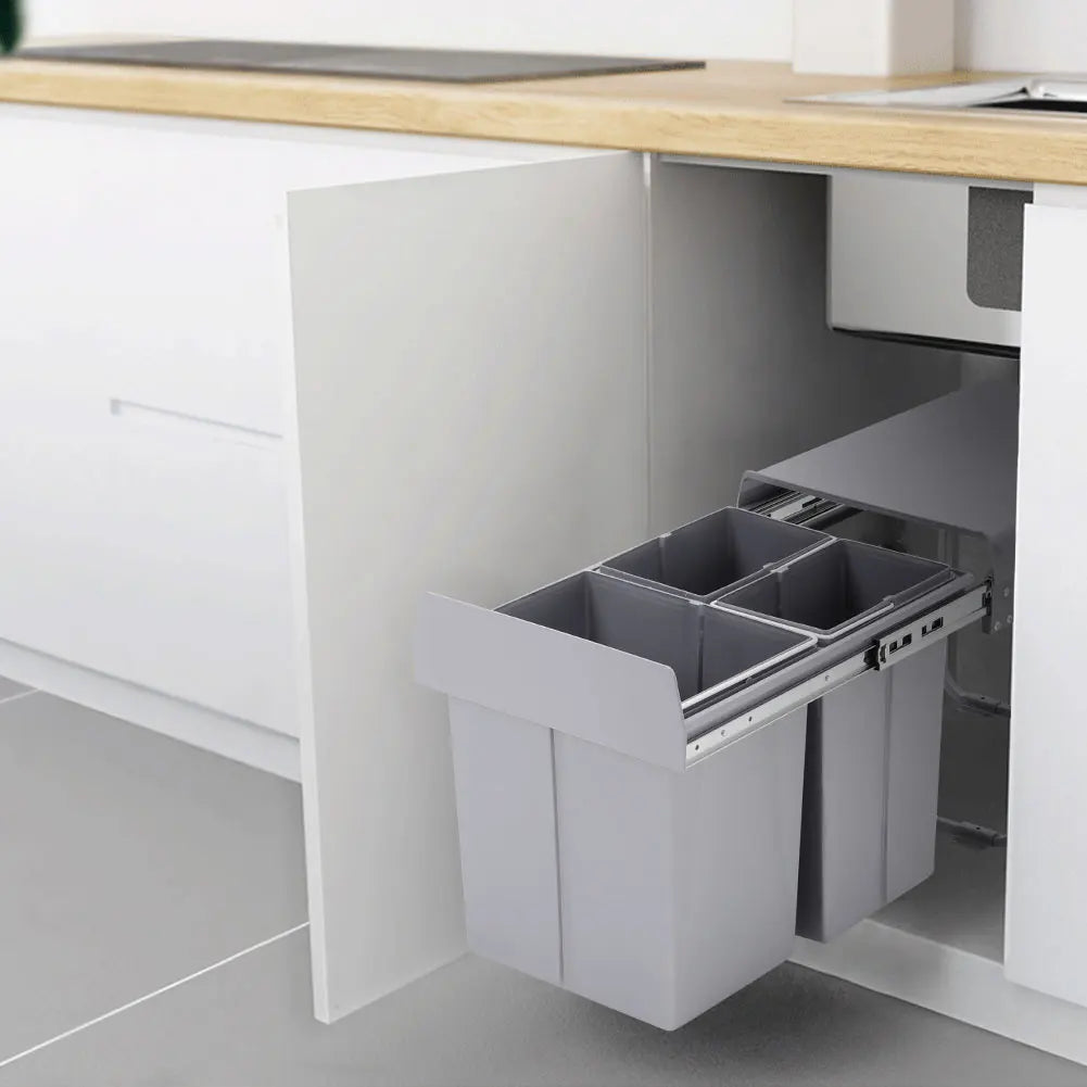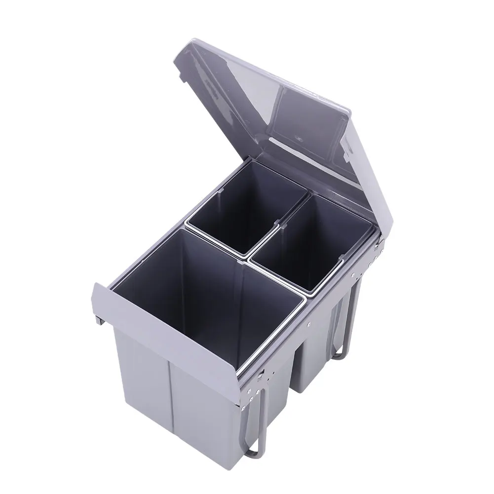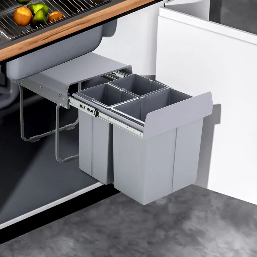 With the pull-out design, the top of the can be mounted under your kitchen cabinet to save space. And when you are preparing your meal, you can pull out the containers and put the waste inside. Featuring a solid plastic exterior and steel-made rail, the trash bins are super durable and ideal for kitchen environment.