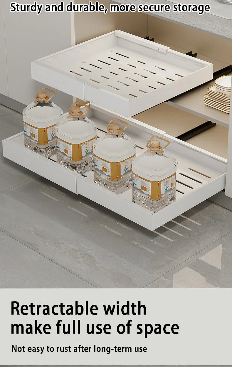 Expandable Pull Out Cabinet Organizer Metal Stick Slide Out Drawers Storage Kitchen Adjustable Sliding Roll Out Cabinet Shelves
