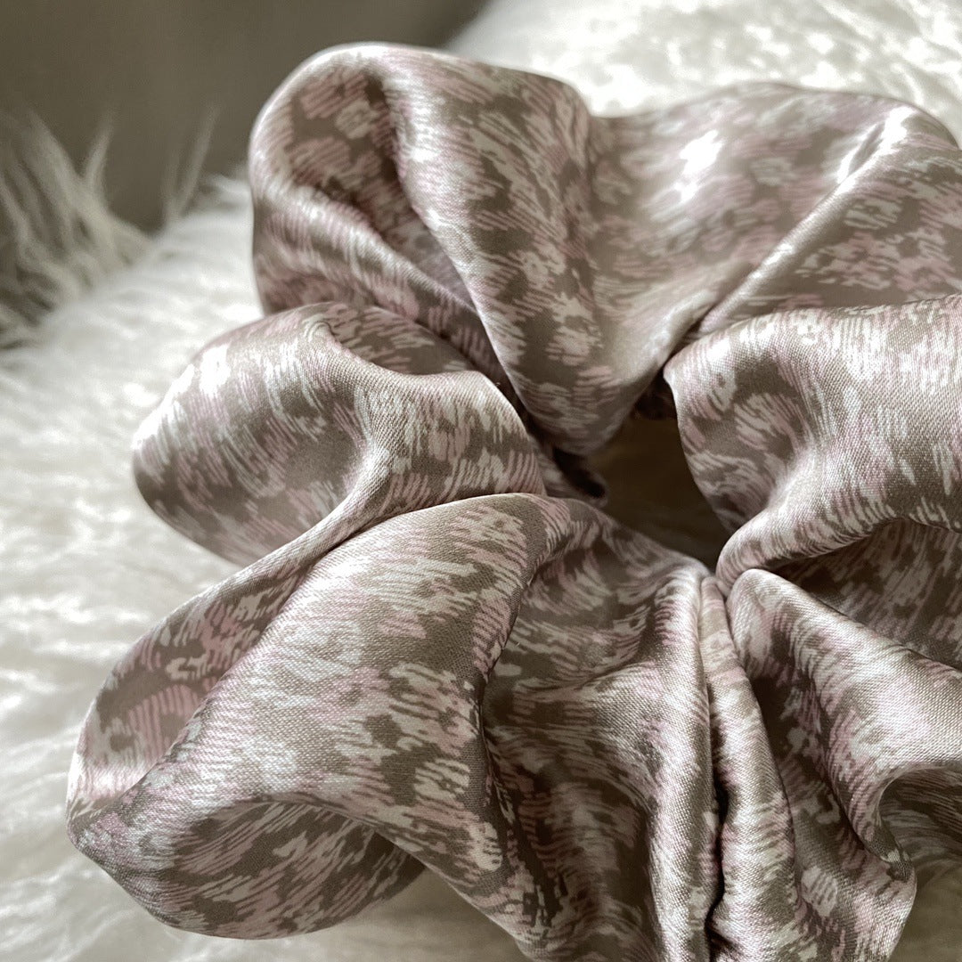 French Glossy Vintage Milk Tea Leopard Print Brown Niche Silk Hair Ring