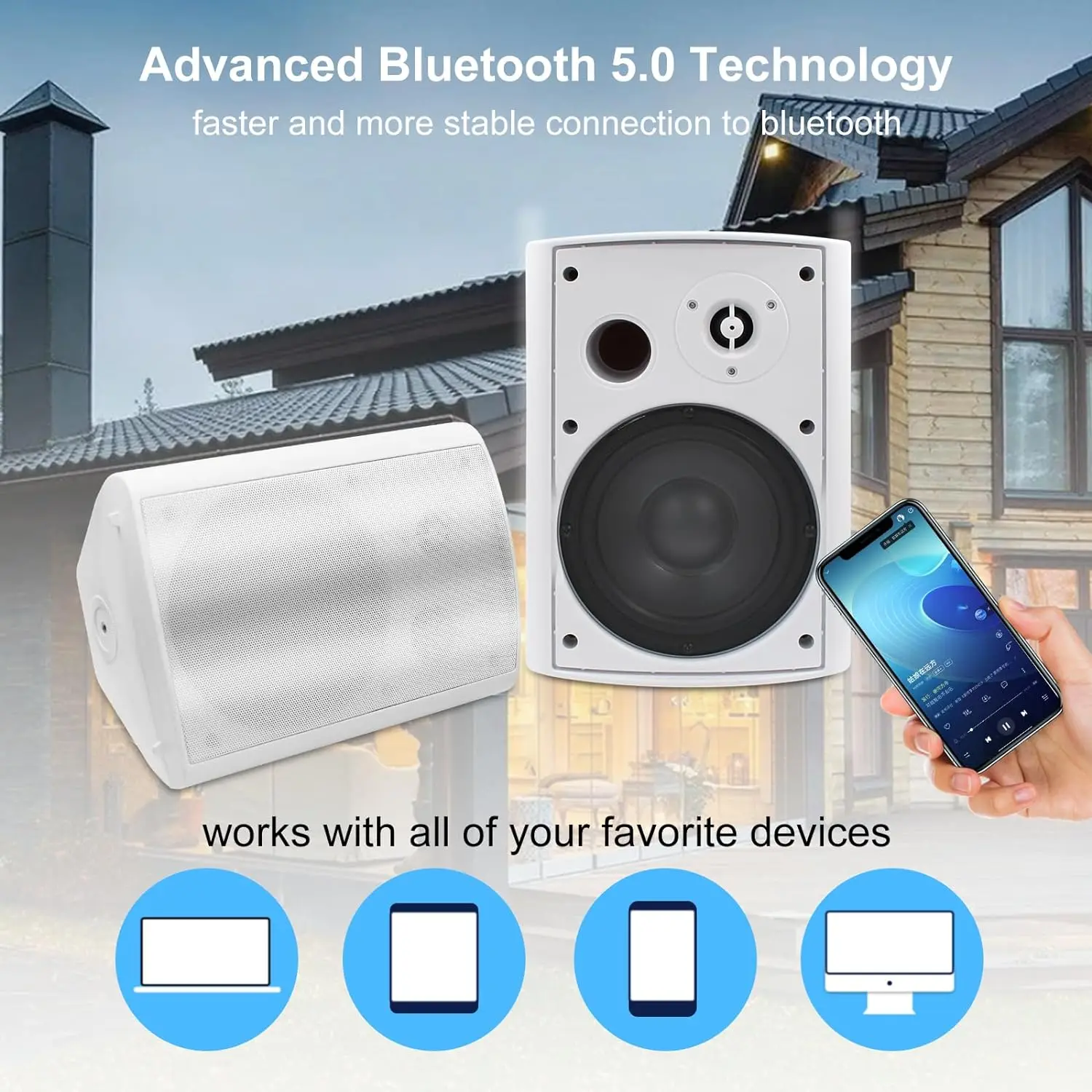 【Strong Bluetooth 5.0 Signal】:bluetooth 5.0 technology provides greater wireless range 65ft and efficient connection to any Bluetooth devices like iPhone, android mobile phone, iPod, tablet, PC. Built-in Bluetooth amplifier with stereo surround sound can connect normally under difficult conditions and the signal is not disturbed. it Includes (1) active and (1) passive 6.5”2-way indoor outdoor blutooth speakers