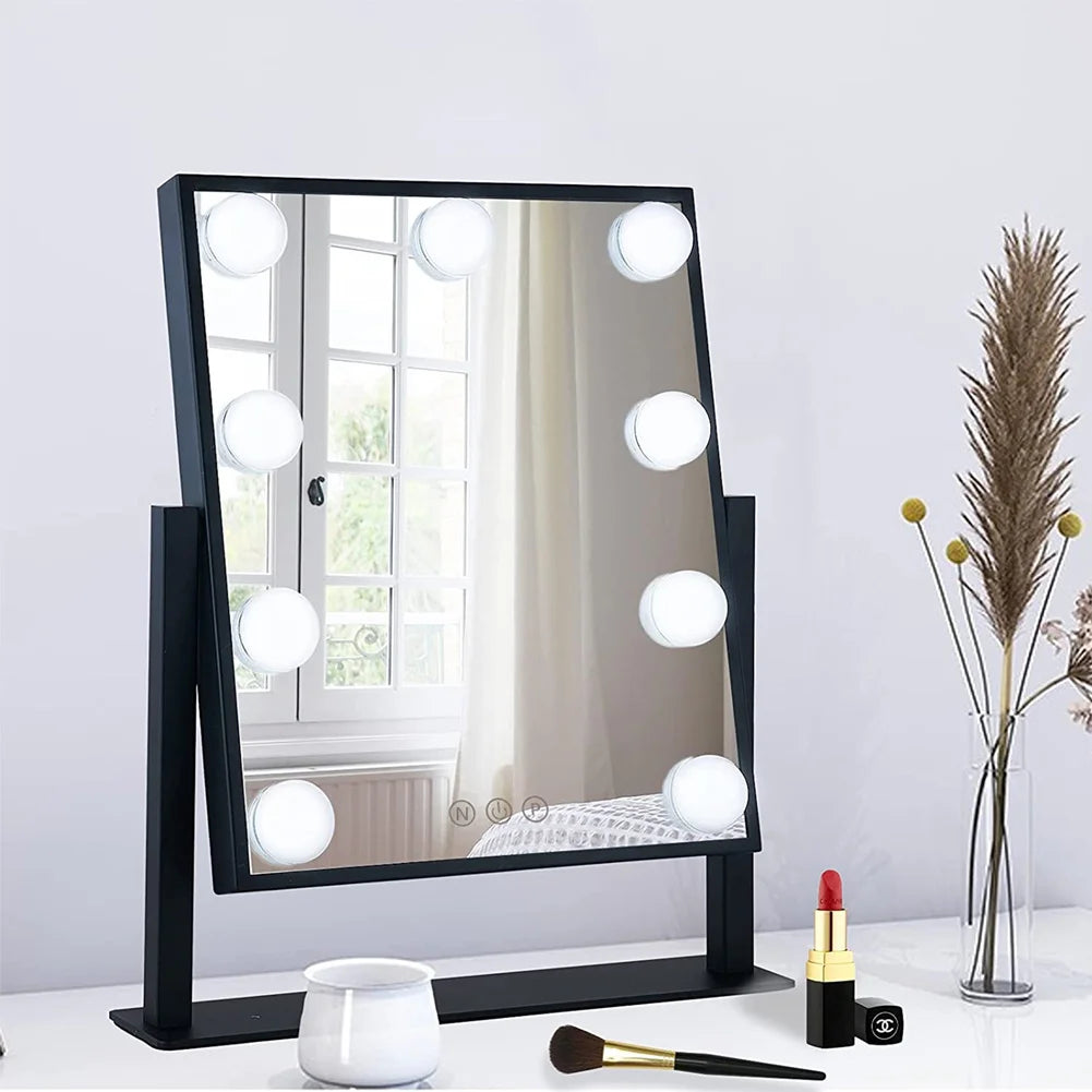 A must-have for your flawless makeup, check out the Hollywood style makeup mirror. Featuring 9 luminous LED light bulbs surrounding the mirror frame, the mirror has a professional and trendy look that will make your makeup time agreeable. What’s more, these LED light bulbs are adjustable, you can adjust them to the optimum color to suit your delicate makeup. And even if the lights are kept on for a long time, they can still remain cool to touch thanks to the latest LED technology. The mirror also has a base that makes angle adjusting more convenient.