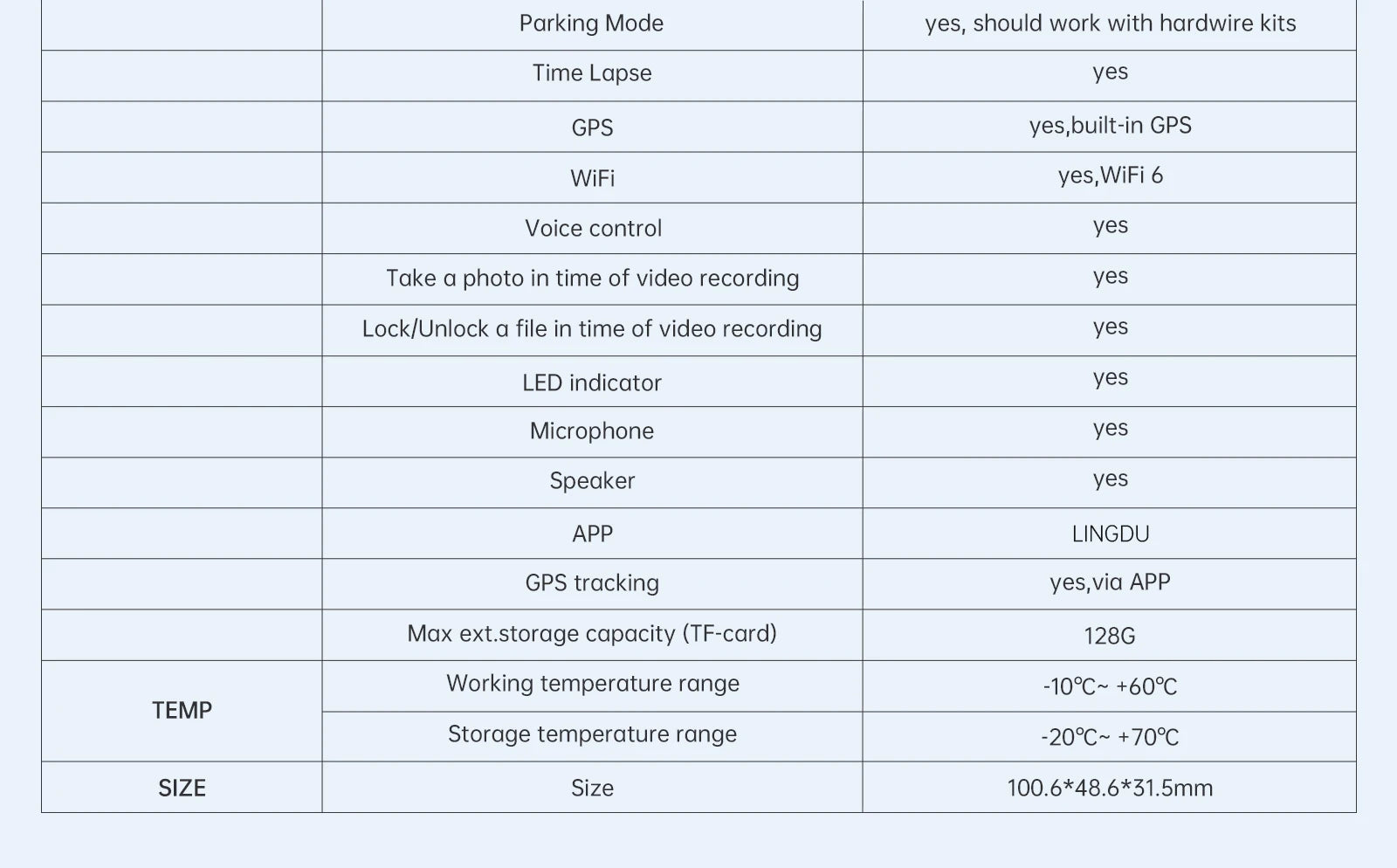 The user-friendly LINGDU app allows access to your dash camera's lens, making it easier to browse recorded videos or photos and change settings. Its customized page design makes the application easy to operate and use. The D500 app runs on a Wi-Fi 6 hotspot and requires connection within a range of 10 feet.