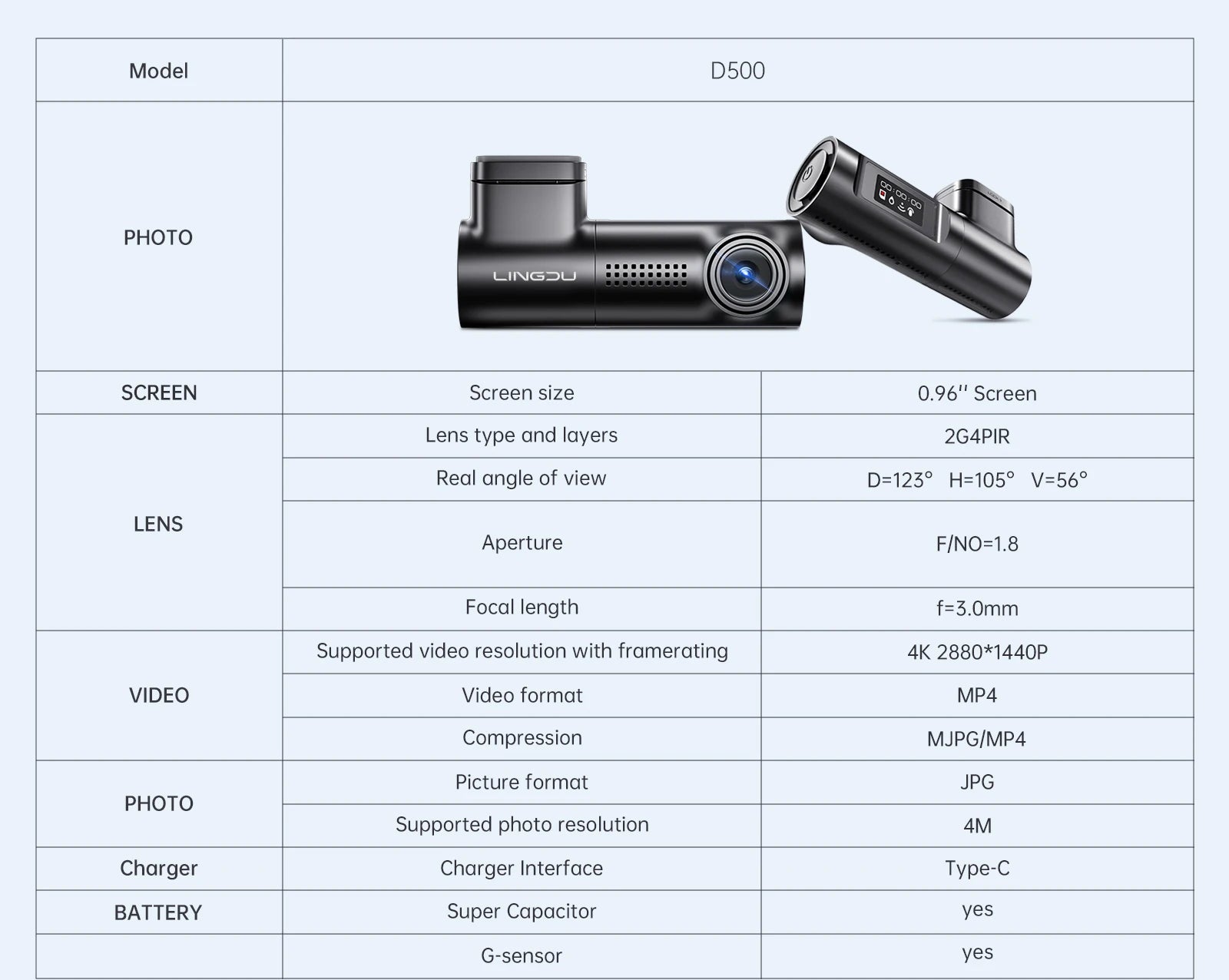 This dashcam provides high-definition video recording no matter where you are, making it a reliable witness for any event. Don't hesitate to choose the LINGDU D500 dashcam for its practicality, ease of use, and outstanding performance.