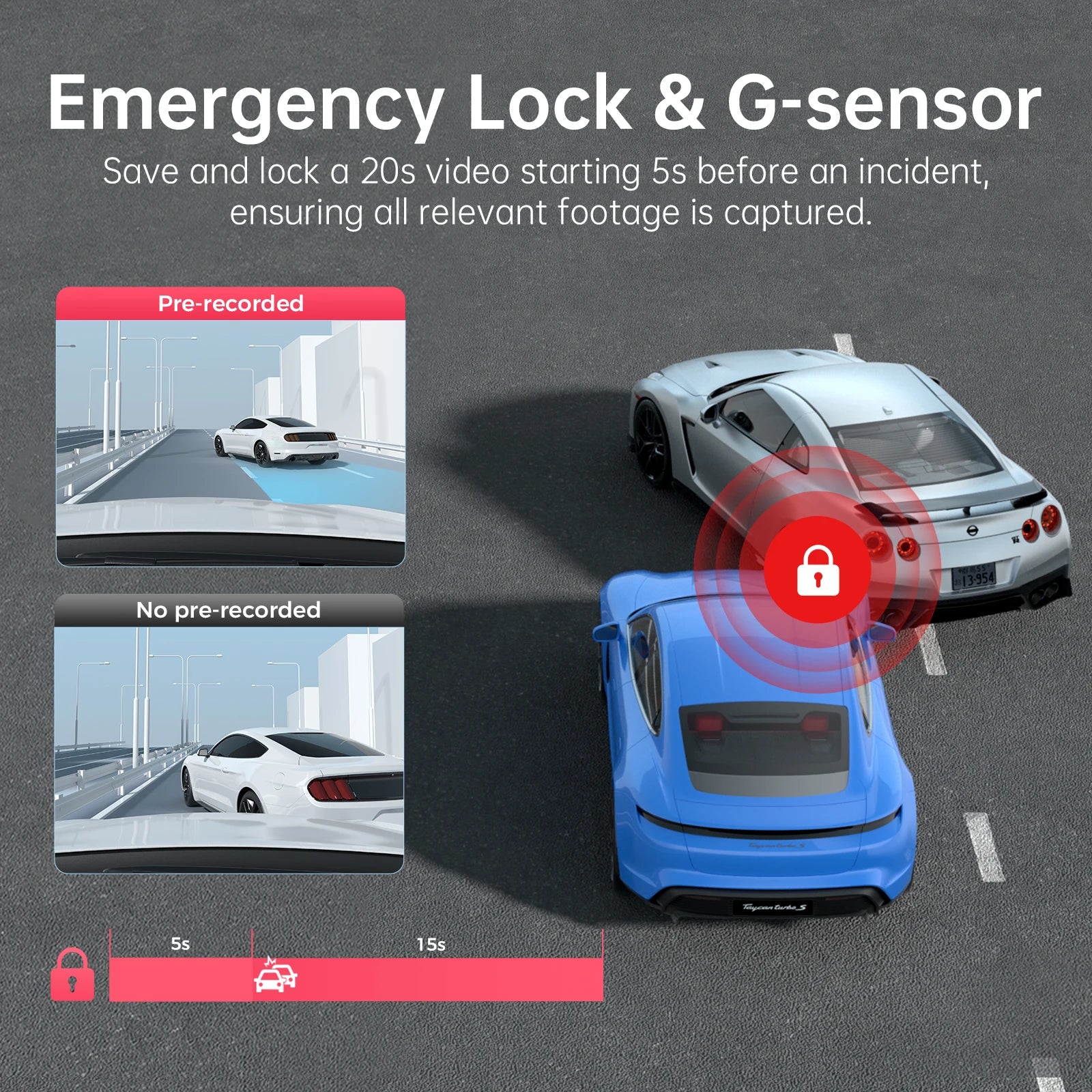 When the vehicle is turned off, it will automatically enter time-lapse 1fps recording mode. If the impact reaches the set G-sensor level, the camera will record a 1-minute video, lock and save it, then return to time-lapse 1fps recording.