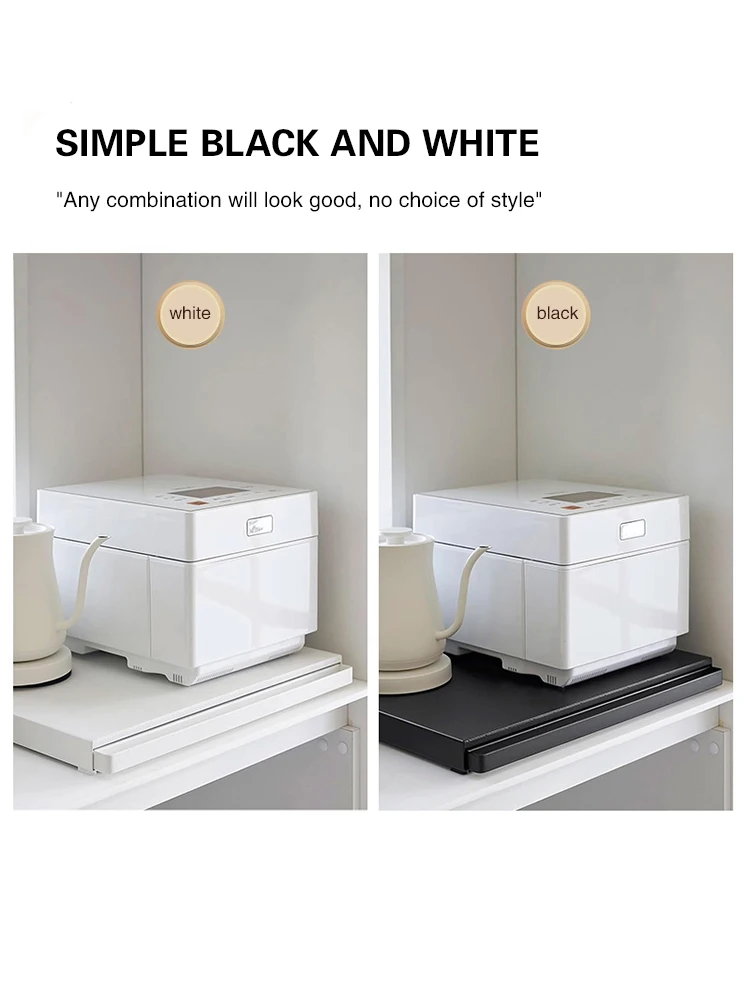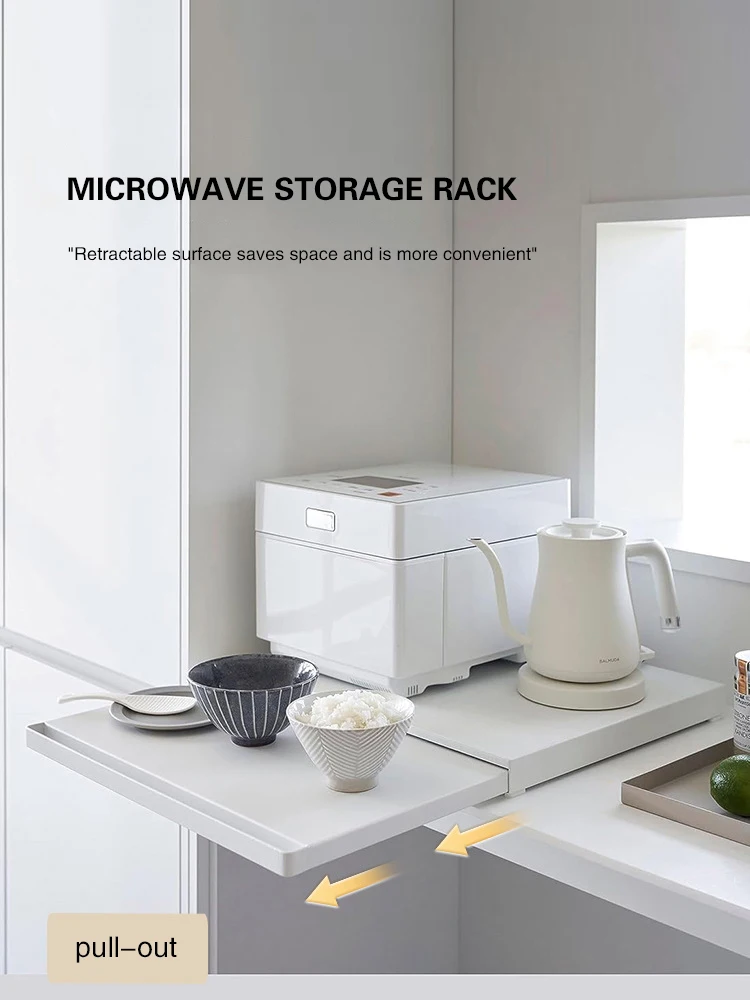 Microwave Storage Rack Bottom Retractable Bracket Drawer Oven Push Pull Divider Kitchen Cook Tray Table Plate Pot Holder