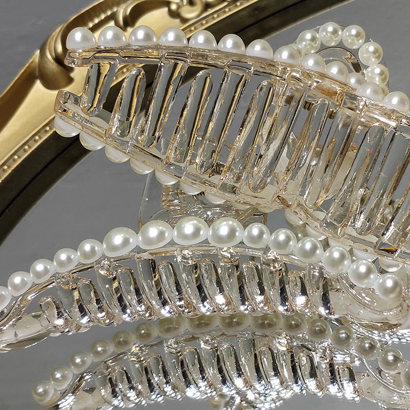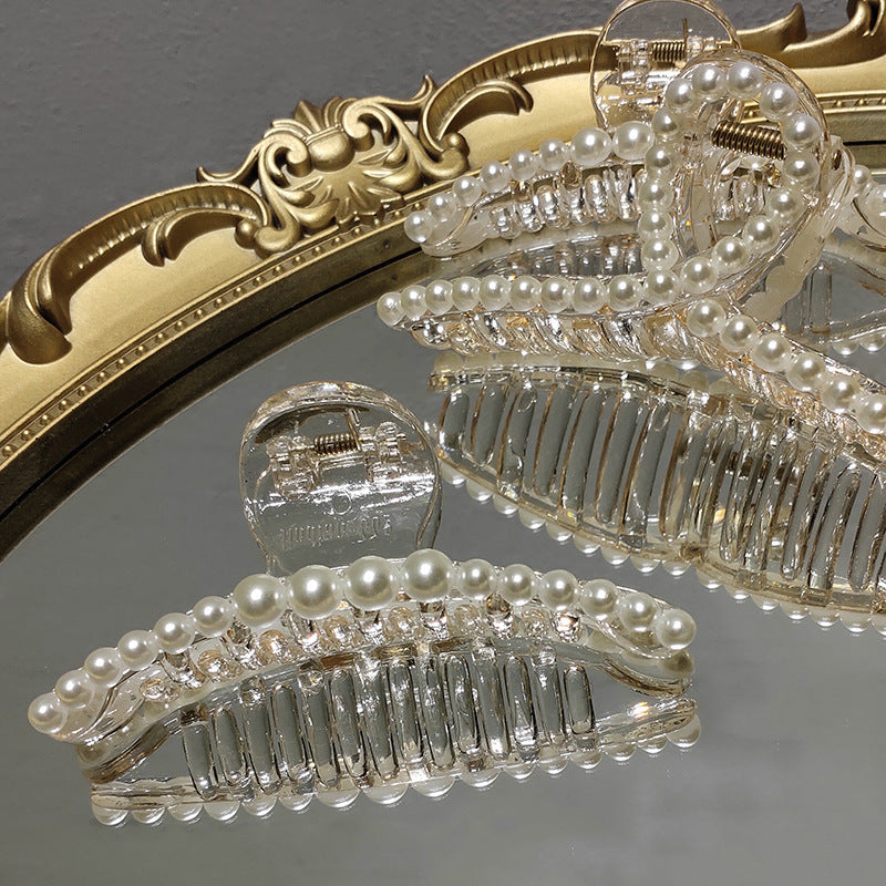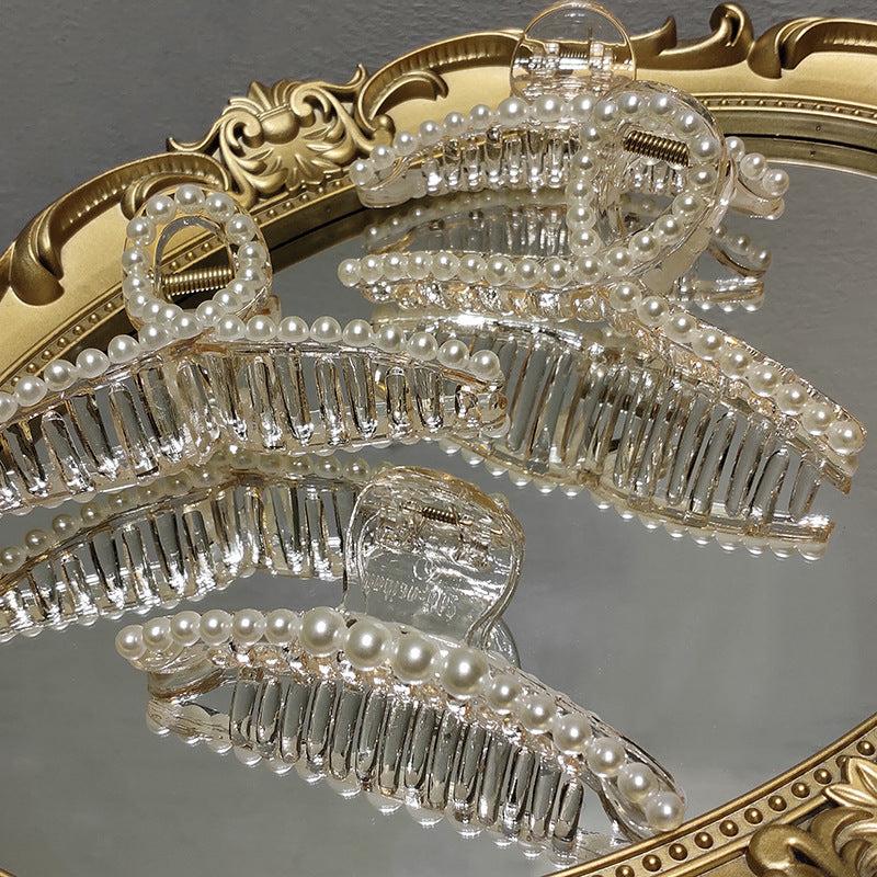 Pearl Grab Clip Gentle Transparent Cross Hair Back Head Hair Catch Korean Ins Large Net Red Shark
