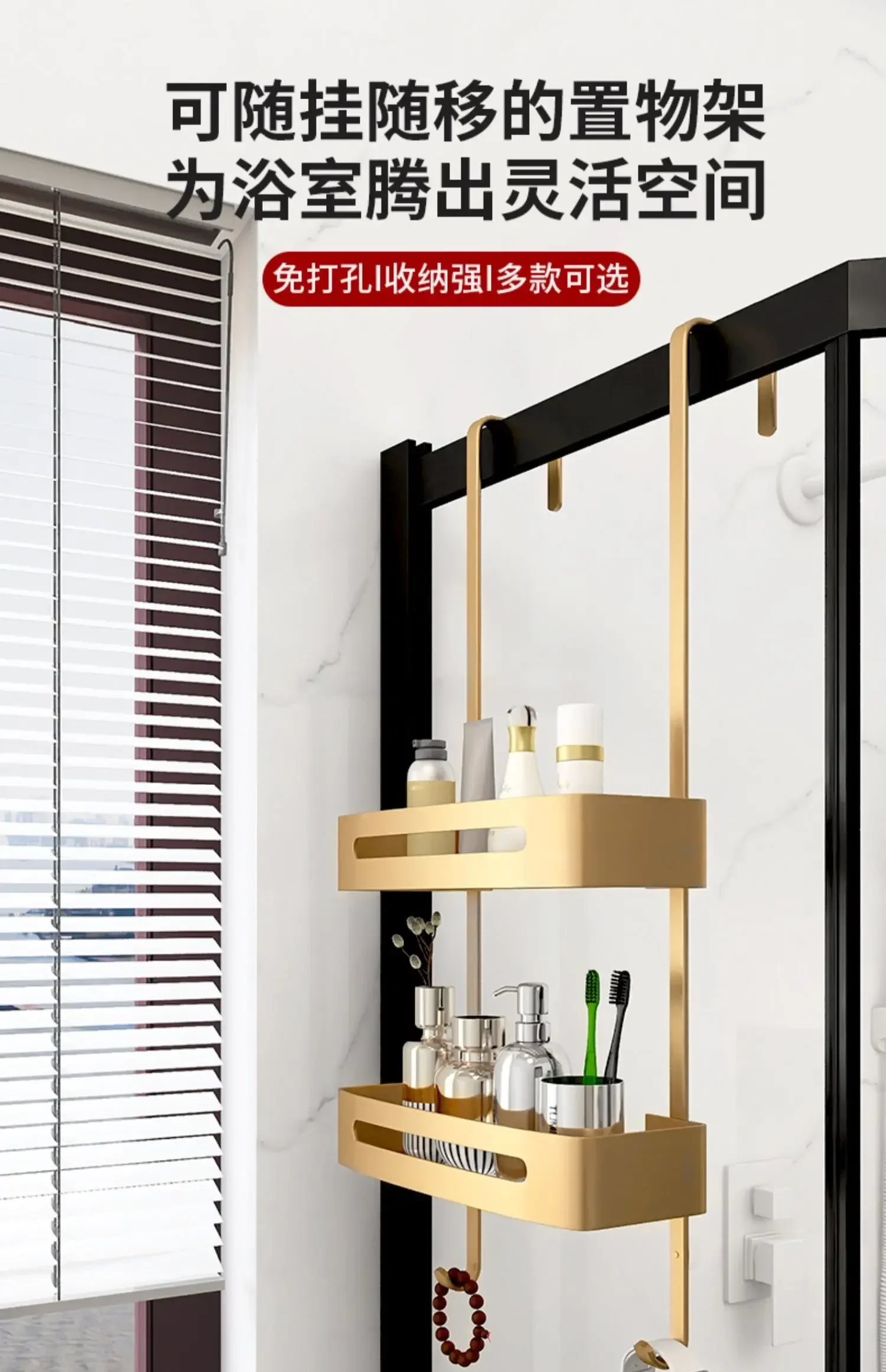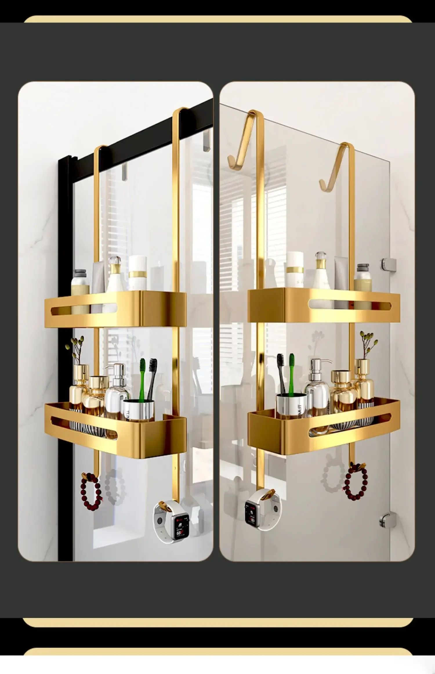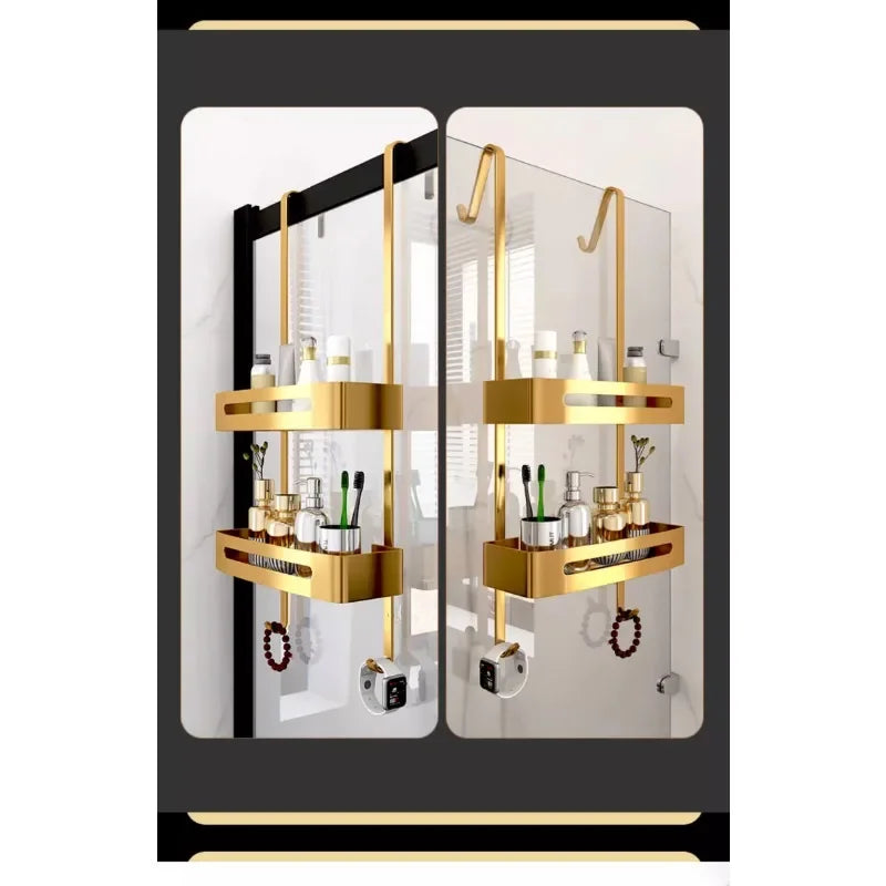 Pull Gold Shower Room Frame Large Capacity Bathroom Double Layer Hanging Basket Without Perforated Wall Hanging Receive Hook