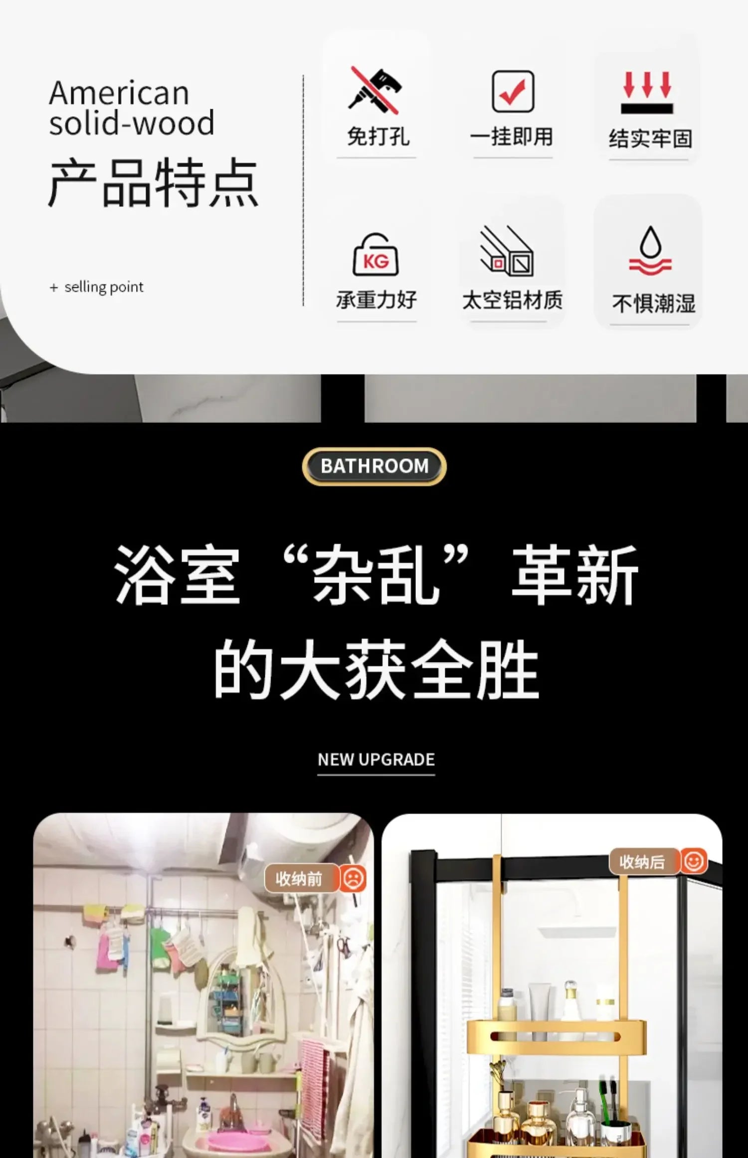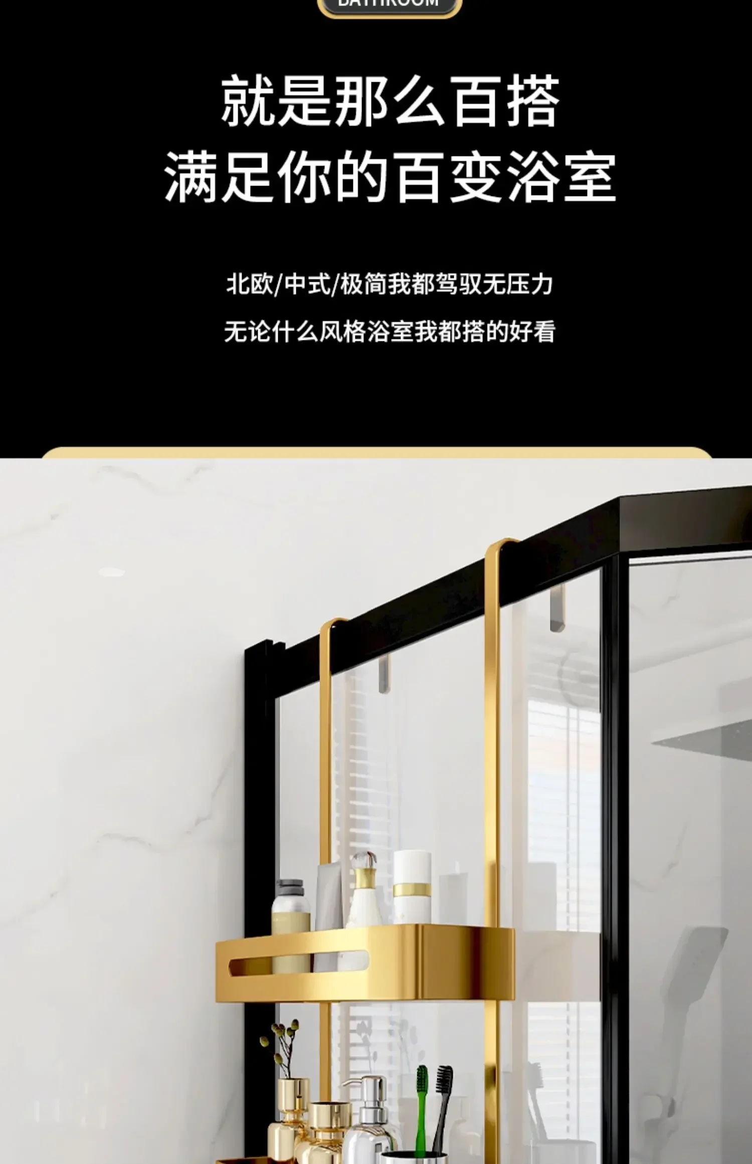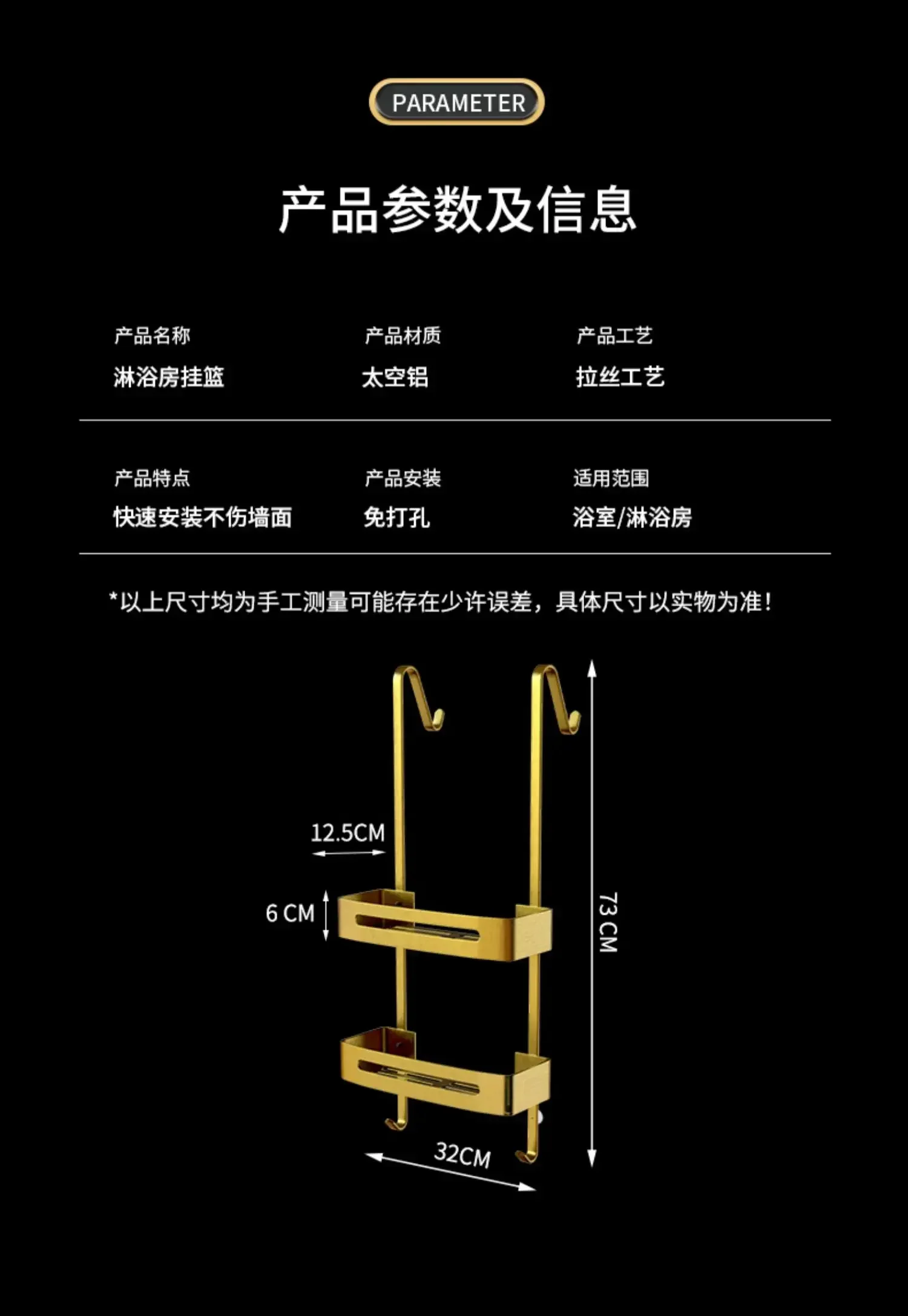 Pull Gold Shower Room Frame Large Capacity Bathroom Double Layer Hanging Basket Without Perforated Wall Hanging Receive Hook