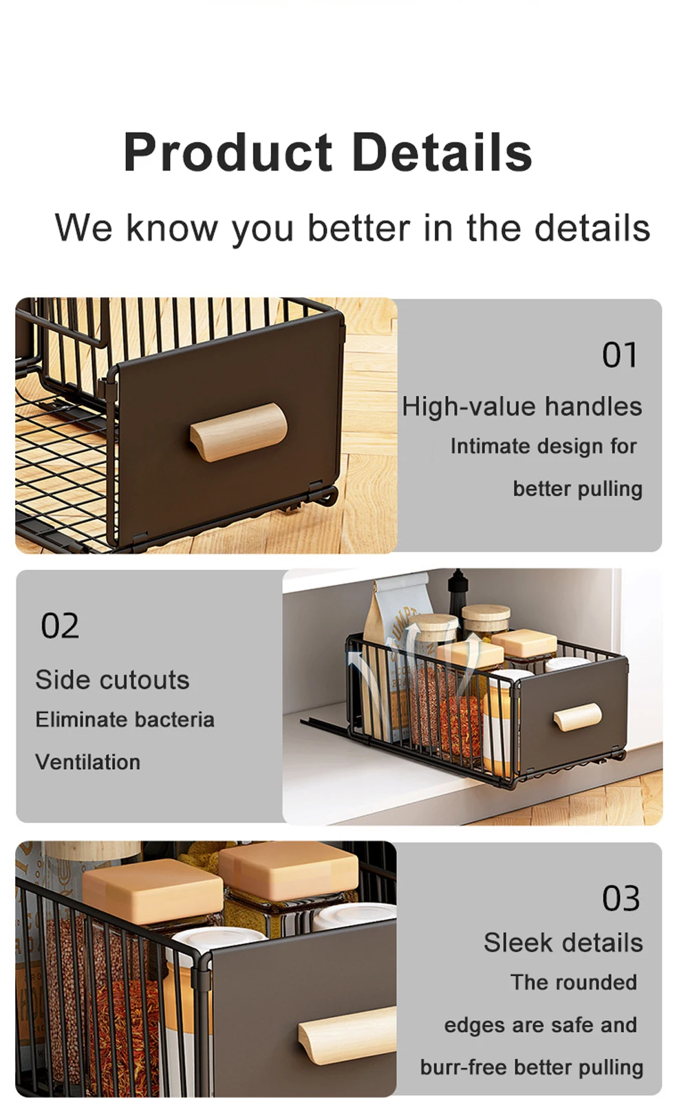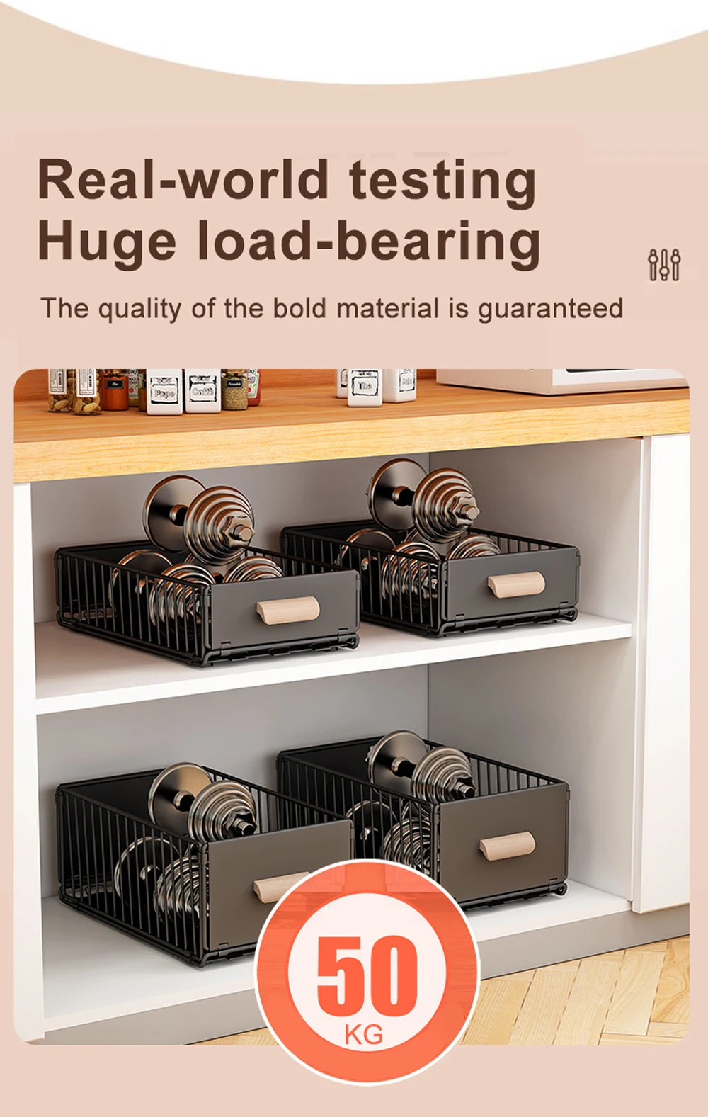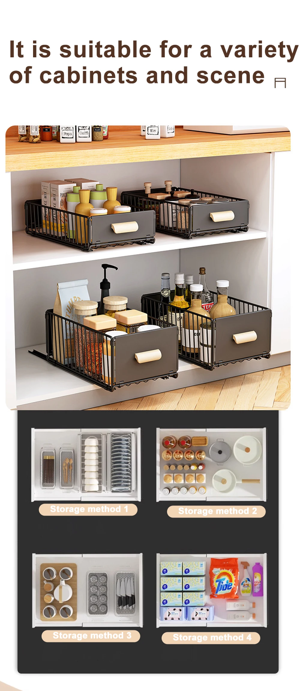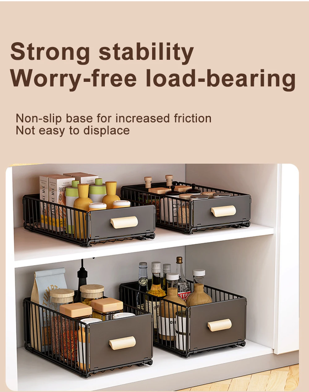 Easy Access to Items:With our pull-out cabinet organizer, you no longer needed to be on your knees to access anything on the lower shelves,and you no need to unload stuff stored in front to get to anything in the back