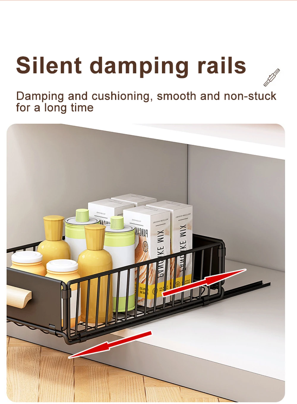 SMOOTH AND QUIET SLIDING: Our pantry organizer design with damping guide rail,damping guide rail has been tested by 4w times of opening and closing. Our pull out cabinet shelf slides out all the way, providing you with easy access, it can slide smoothly without unpleasant noise.