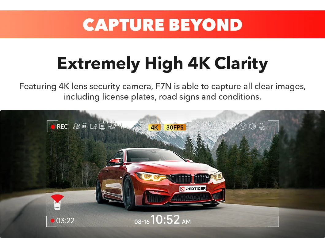 1 * F7N 4K Dash Cam; 1*1080P In-car Rear Camera