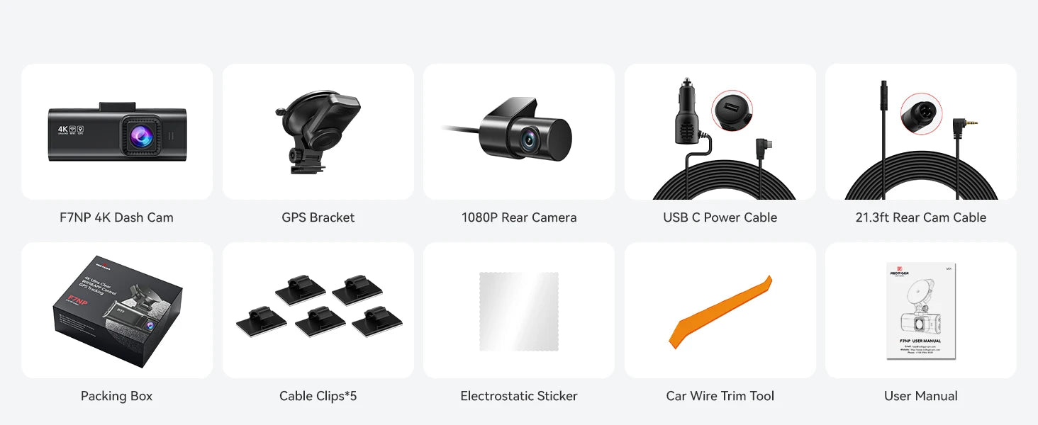 Accessories: 1 x REDTIGER Dash Cam Front F7N-S 1 x Suction Cup with GPS 1 x 11.5ft