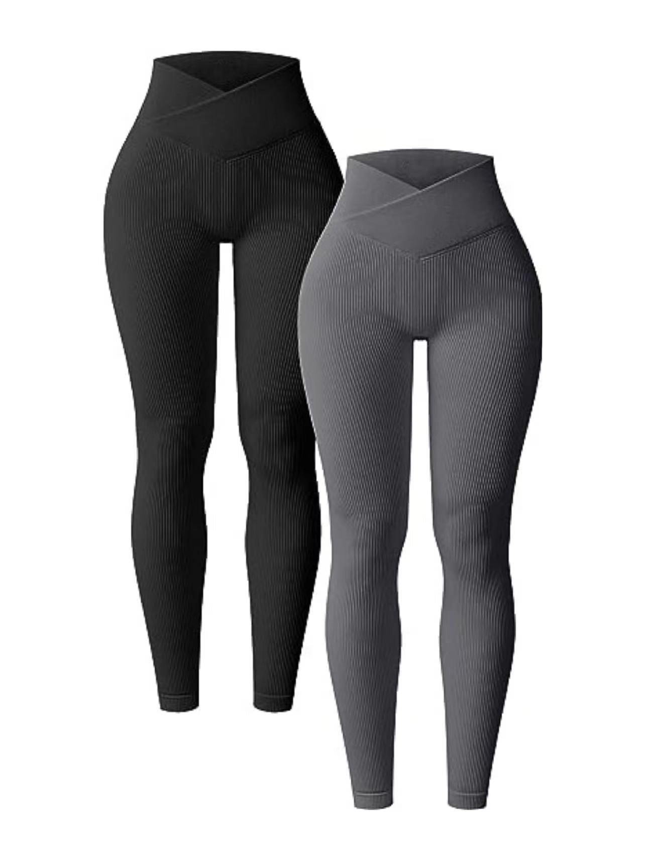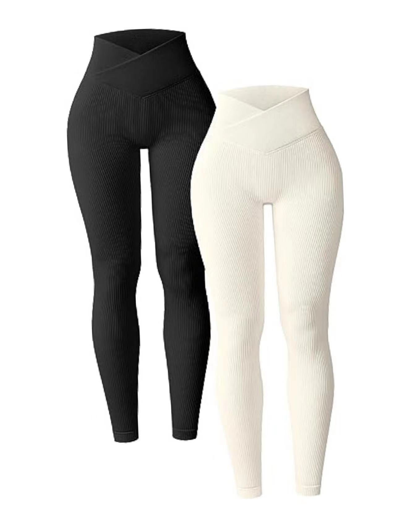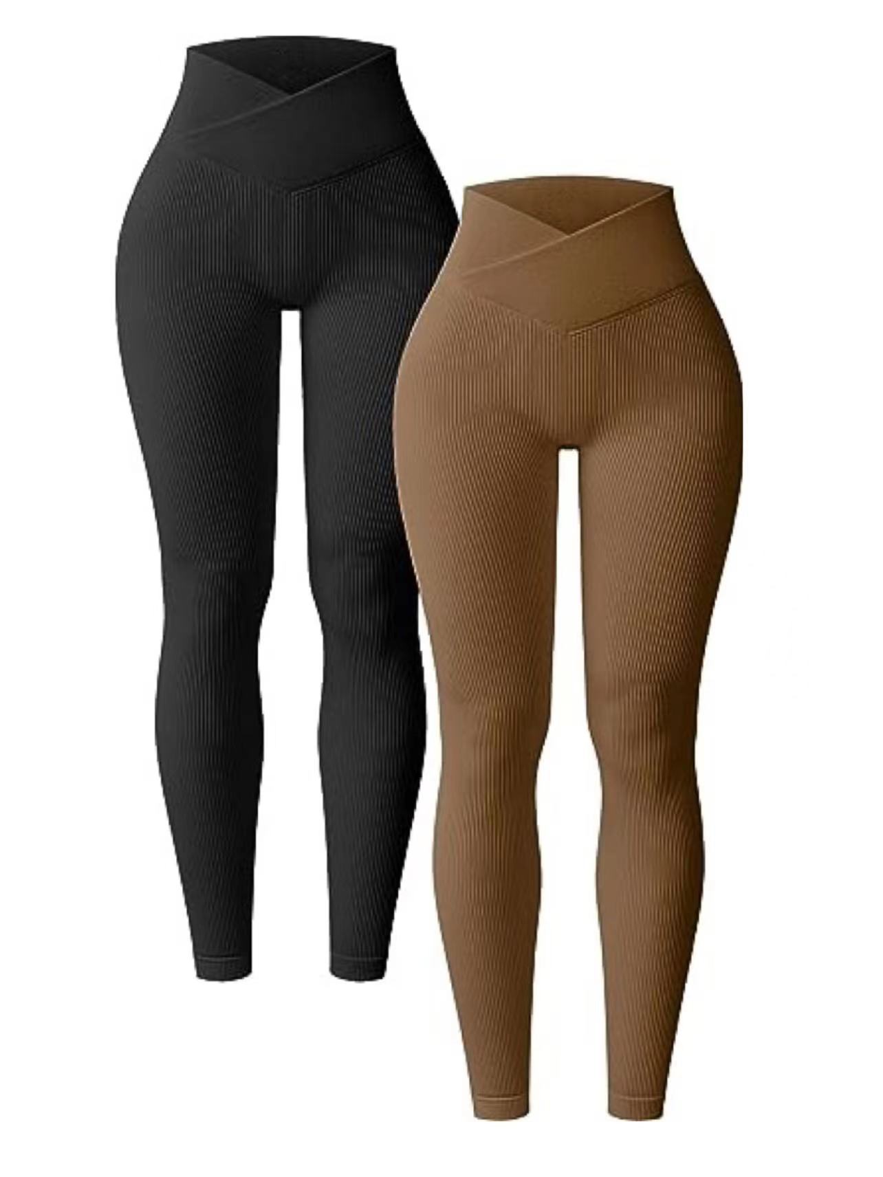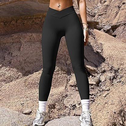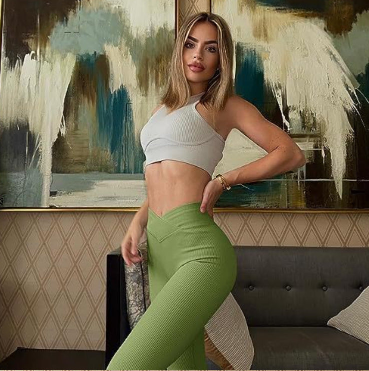 Rib High Waist Cross Sports Bottoming Casual Trousers
