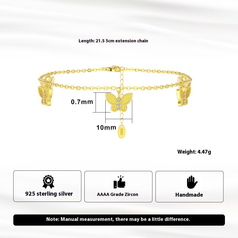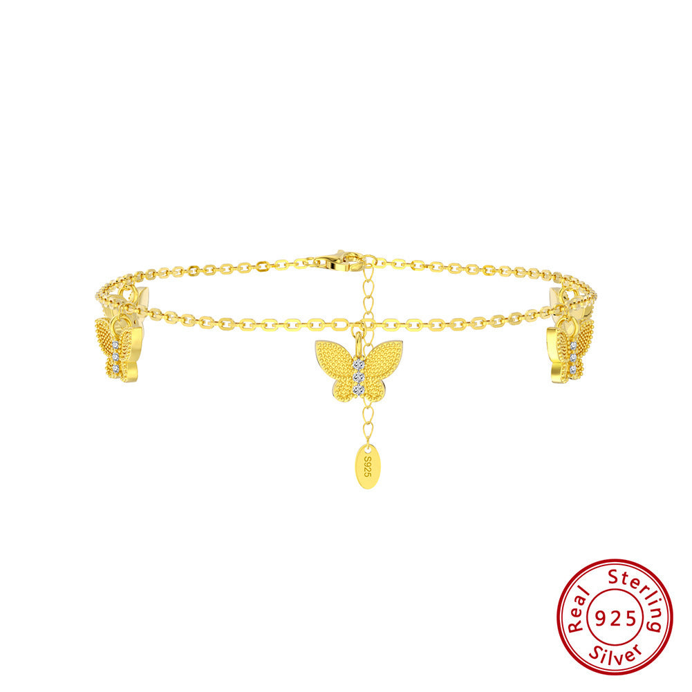 S925 Sterling Silver All-match Inlaid Zircon Single Row Anklet Korean Style About Foot Ornaments