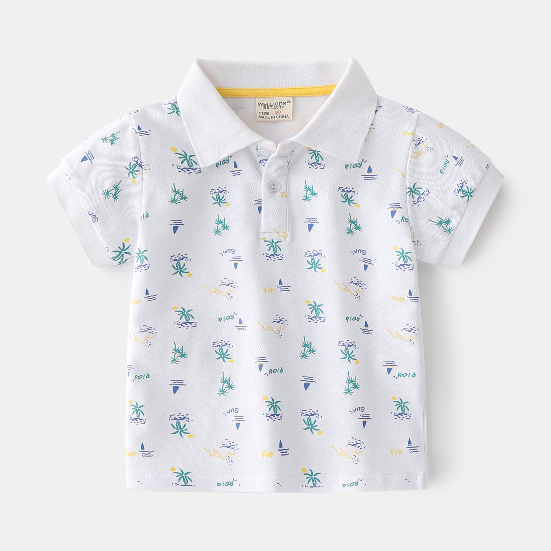 Color: navy blue holiday style short-sleeved POLO, white holiday style short-sleeved POLO
