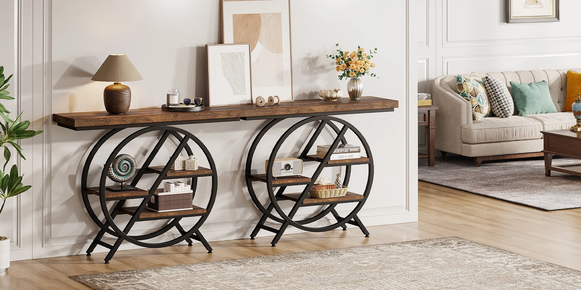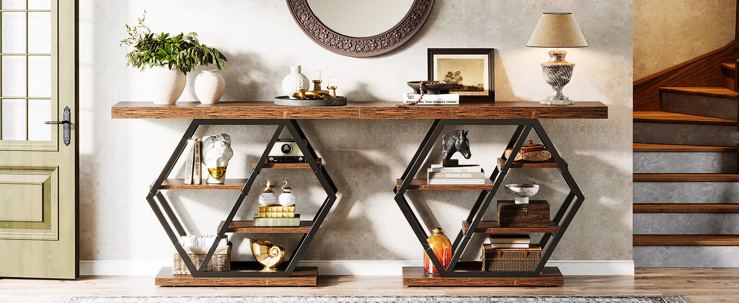 [Practical & Multipurpose]: This narrow table serves multiple functions—it can be used as a console table in the entryway, a sofa table behind your couch, a TV stand or storage shelf in the living room, or as a bar or accent table. Perfect for storing photos, collections, plants, and more, it enhances the functionality of your living room, entryway, hallway, kitchen, or corridor.