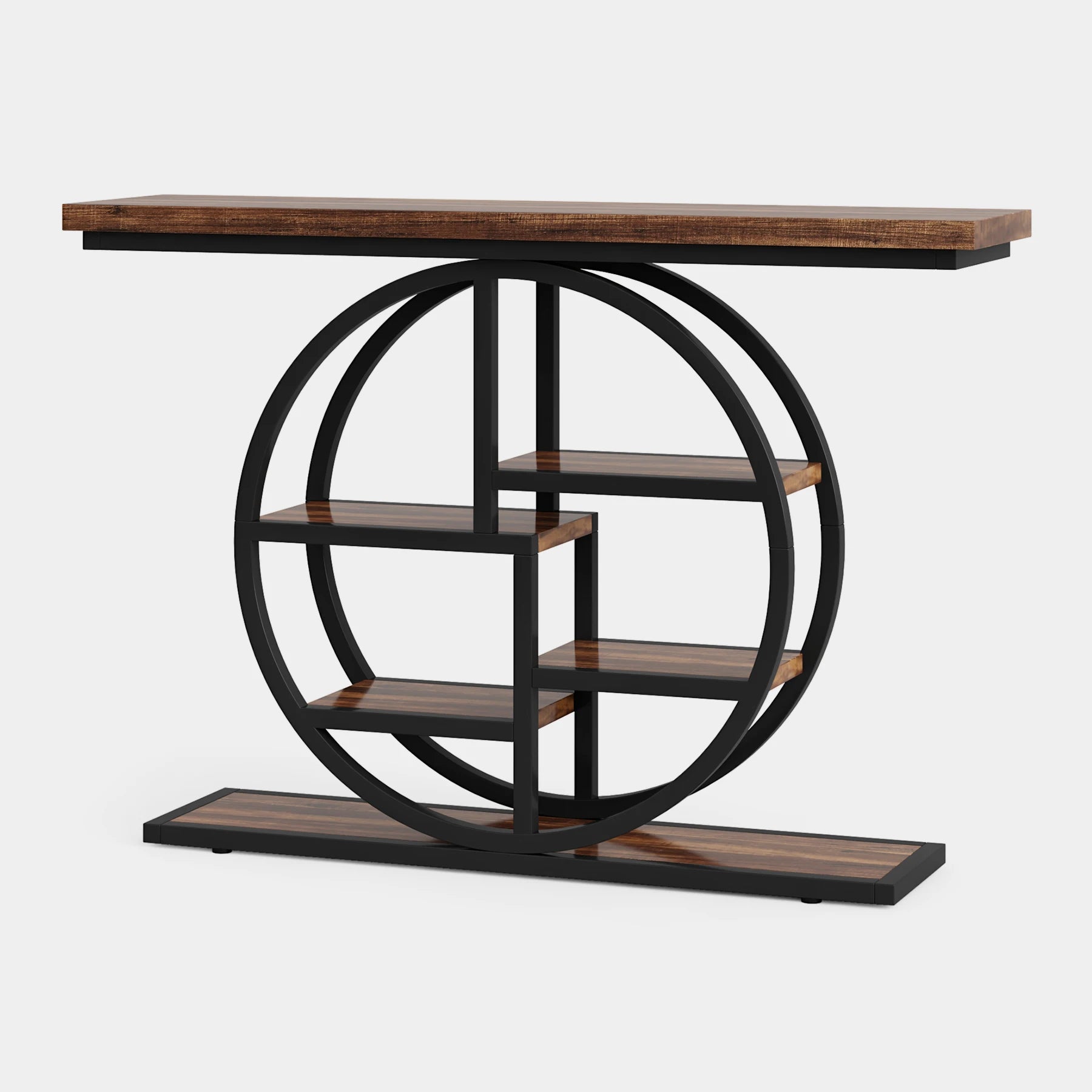 [Unique & Elegant Style]: The combination of rectangular wood boards and round metal frame gives a distinctive and individualistic aesthetic appeal, making it a standout centerpiece in your room. Its appearance imbues a sense of elegance, simplicity, and refinement. Moreover, its open shelf design allows for easy access.