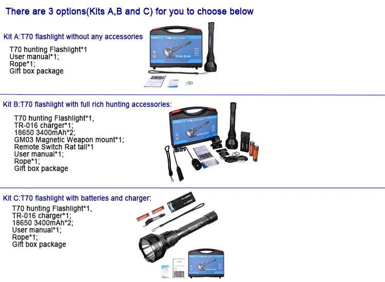 1/T70 ultra long range 1000 meters and compact tactical hunting flashlight