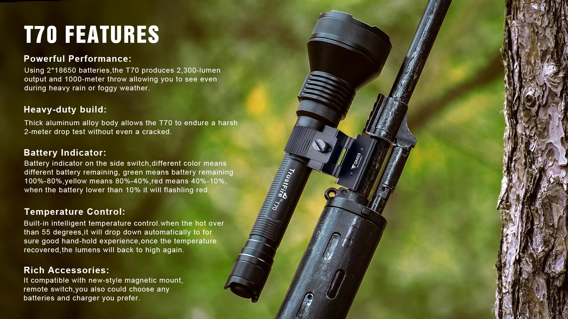 Trustfire T70 LED Flashlight 2300Lumens Long Range 1000 Meters for Hunting Outdoor Camping Hiking Search Rescue