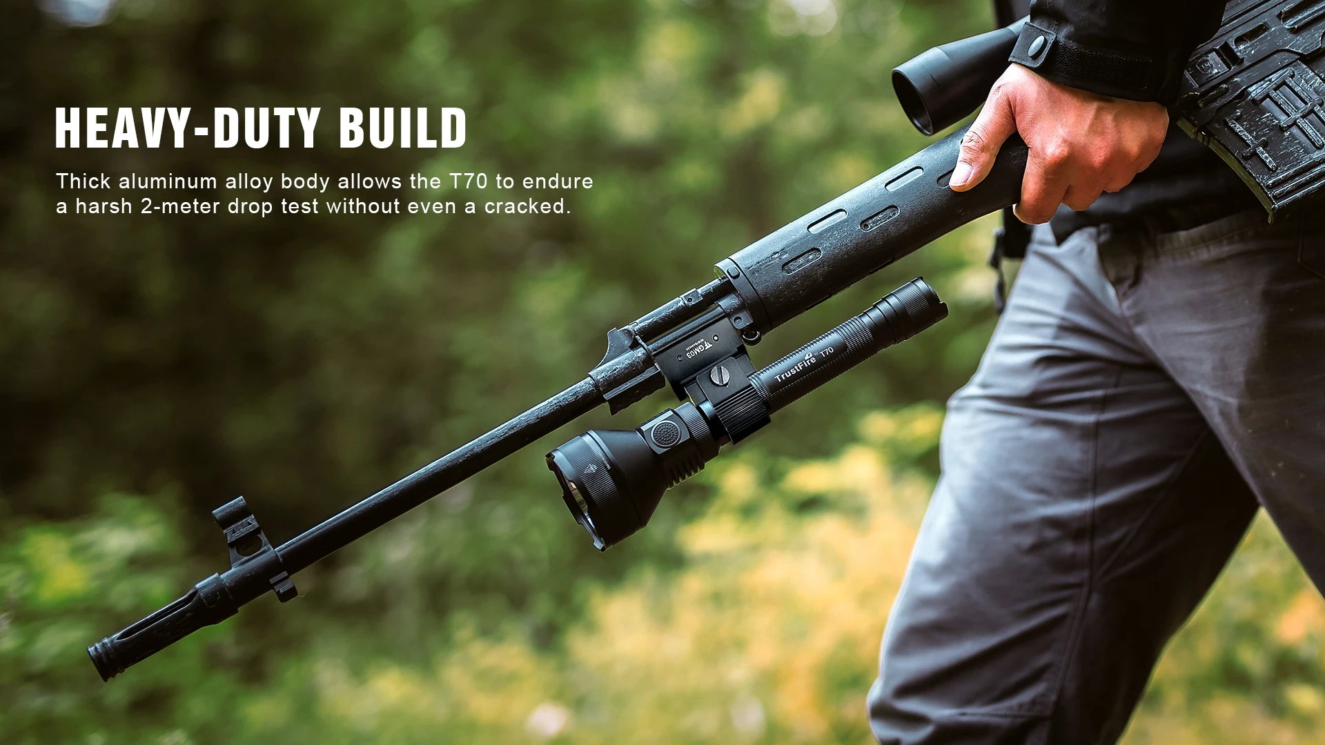 Thick aluminum alloy body allows the T70 to endure a harsh 1-meter drop test without even a cracked.