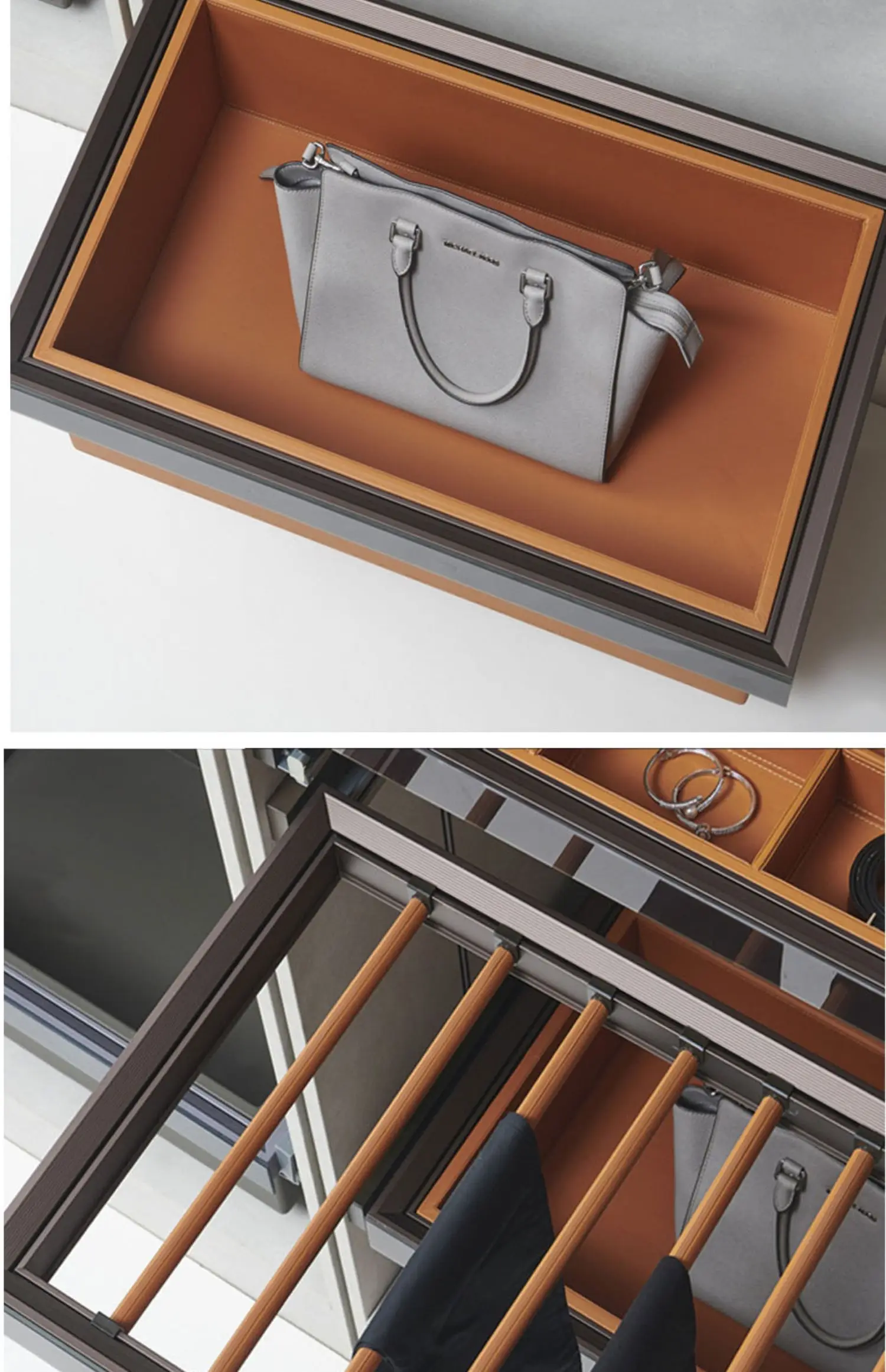 Wardrobe jewelry leather storage box grid cloakroom pull-out type built-in multi-functional telescopic pants rack pull basket ac