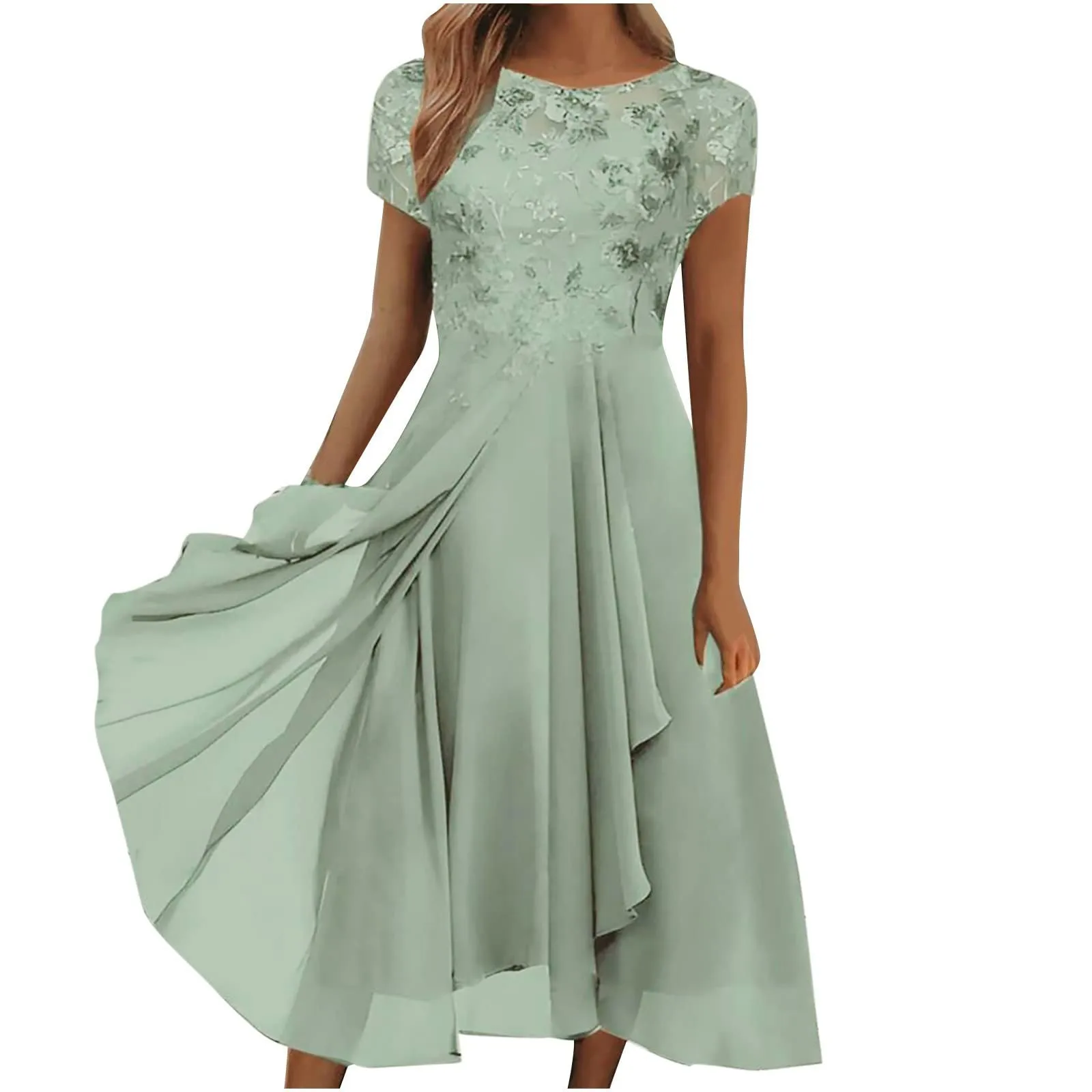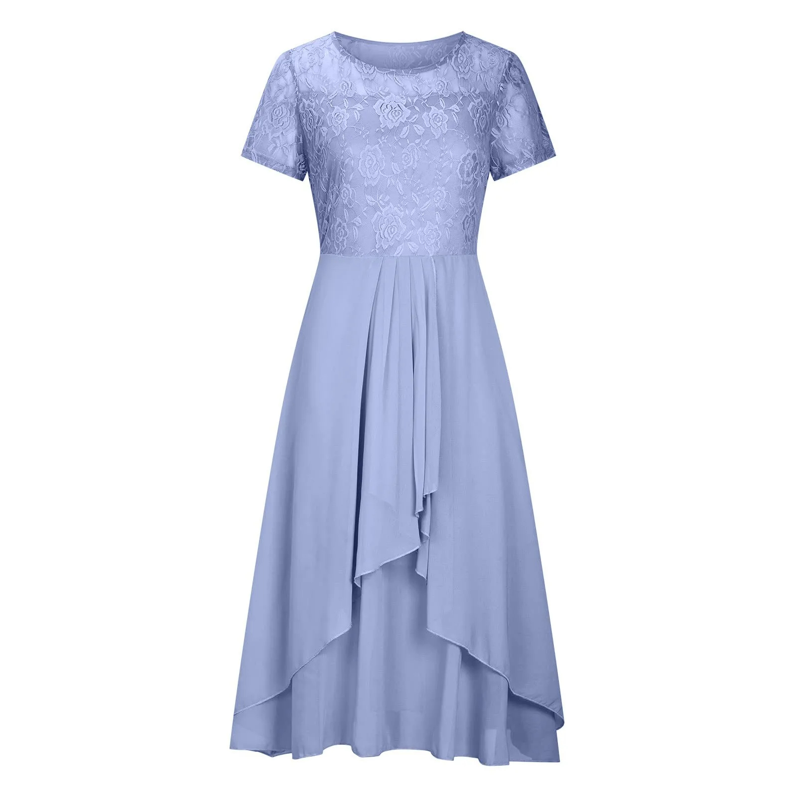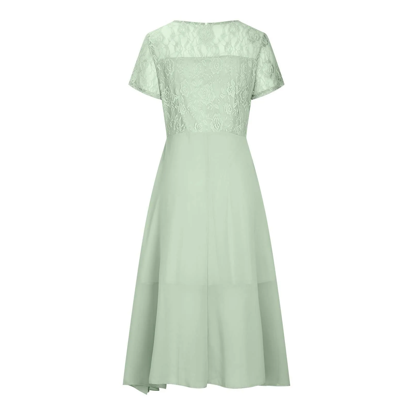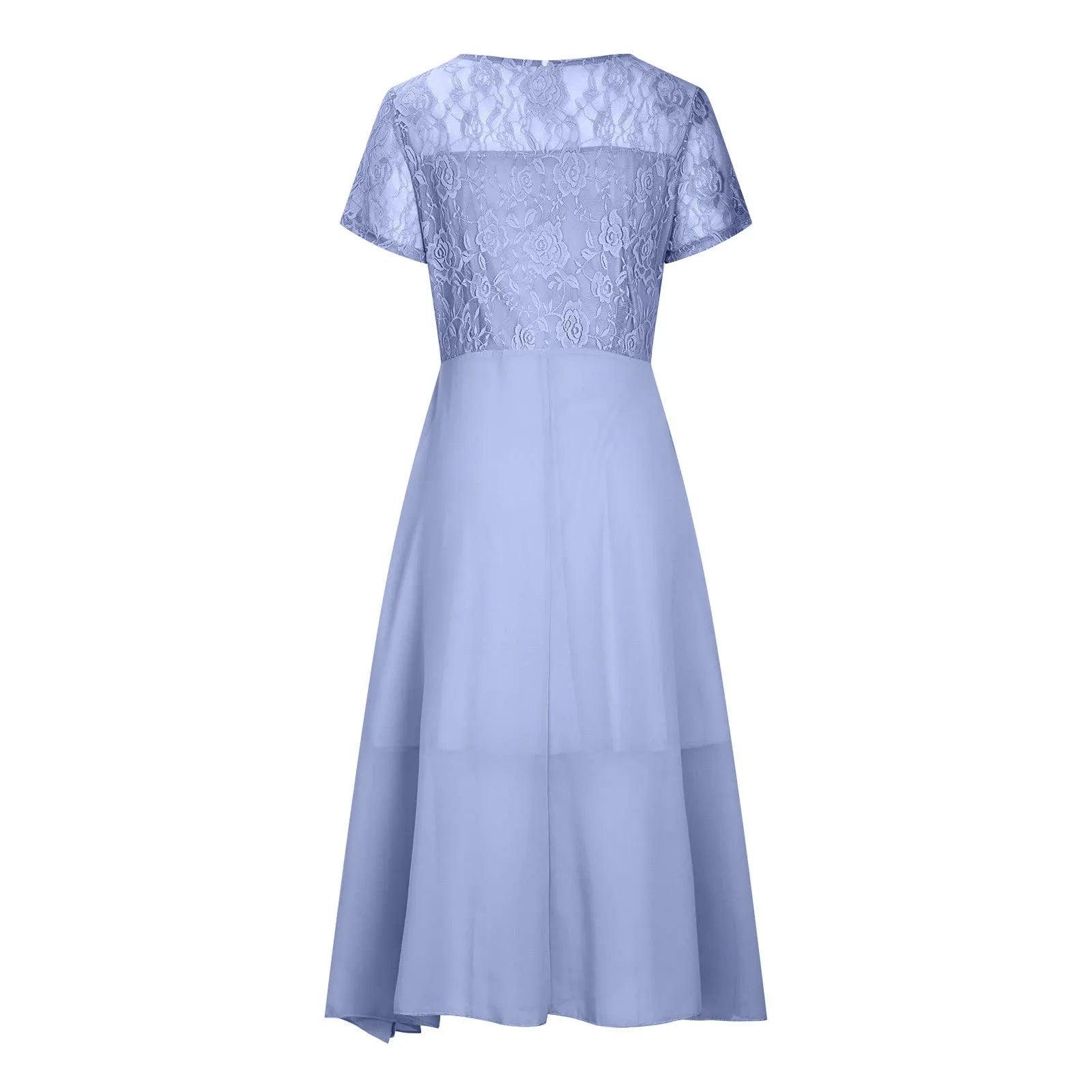 Women's Dress Chiffon Elegant Lace Patchwork Dress Cut-out Long Dress Bridesmaid Evening Dress