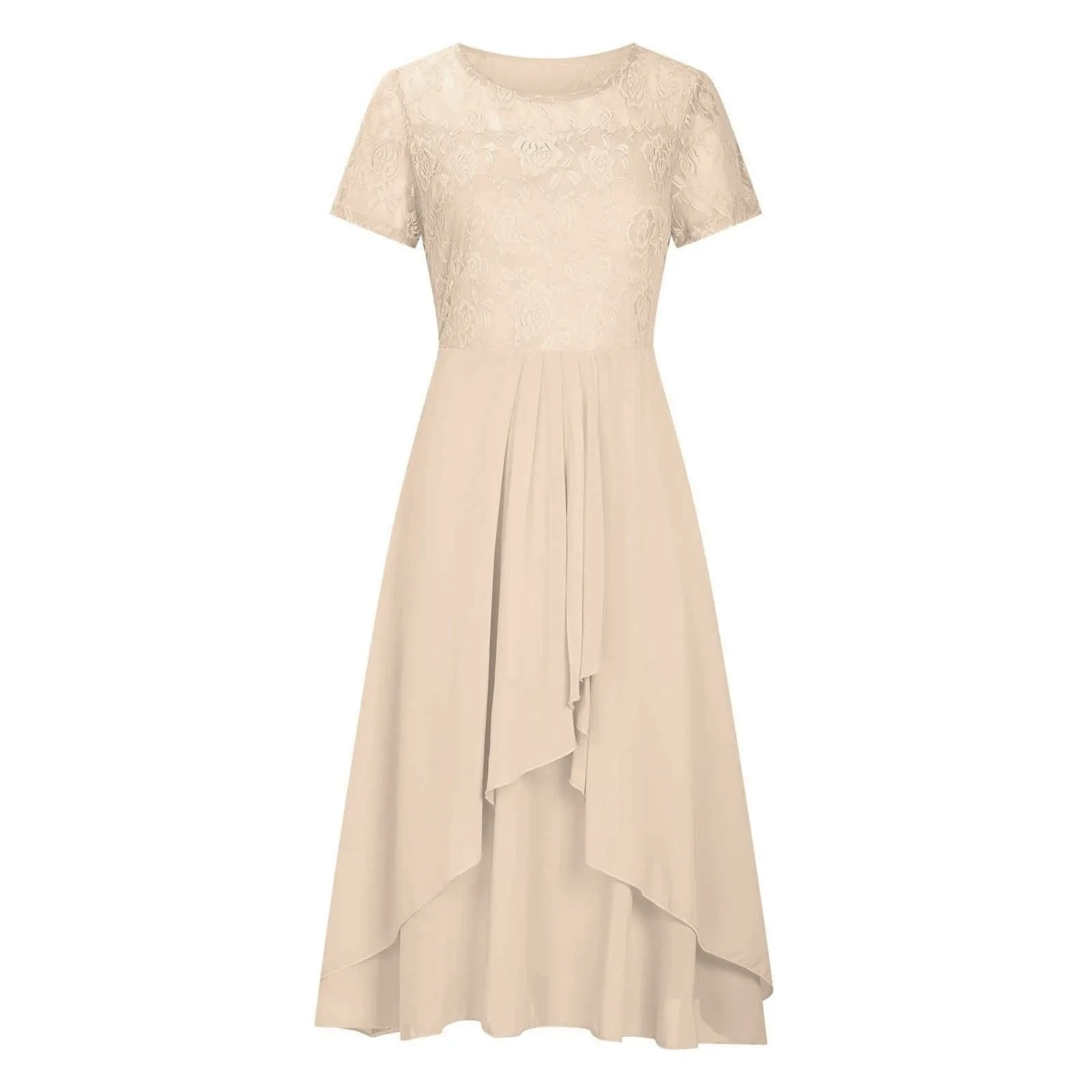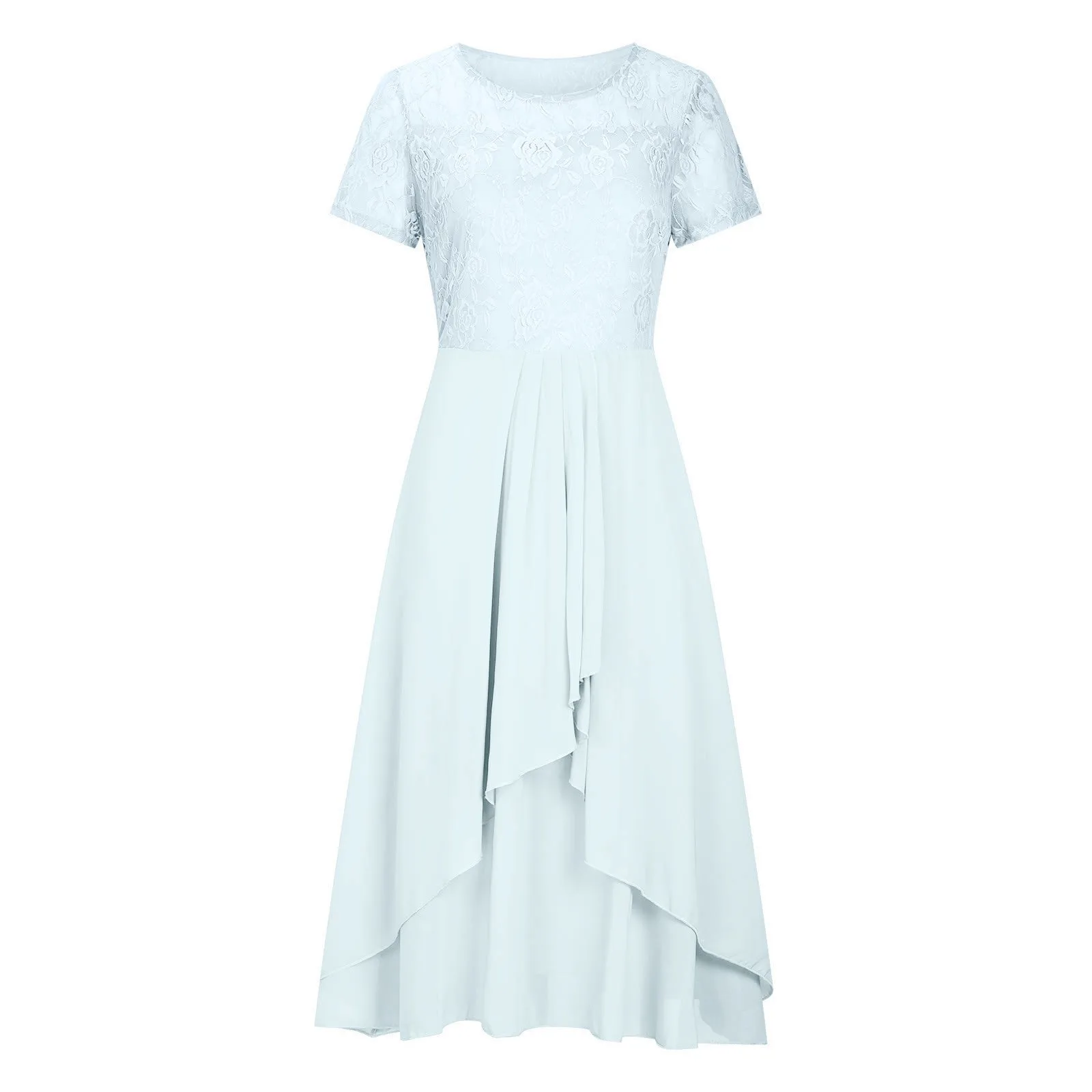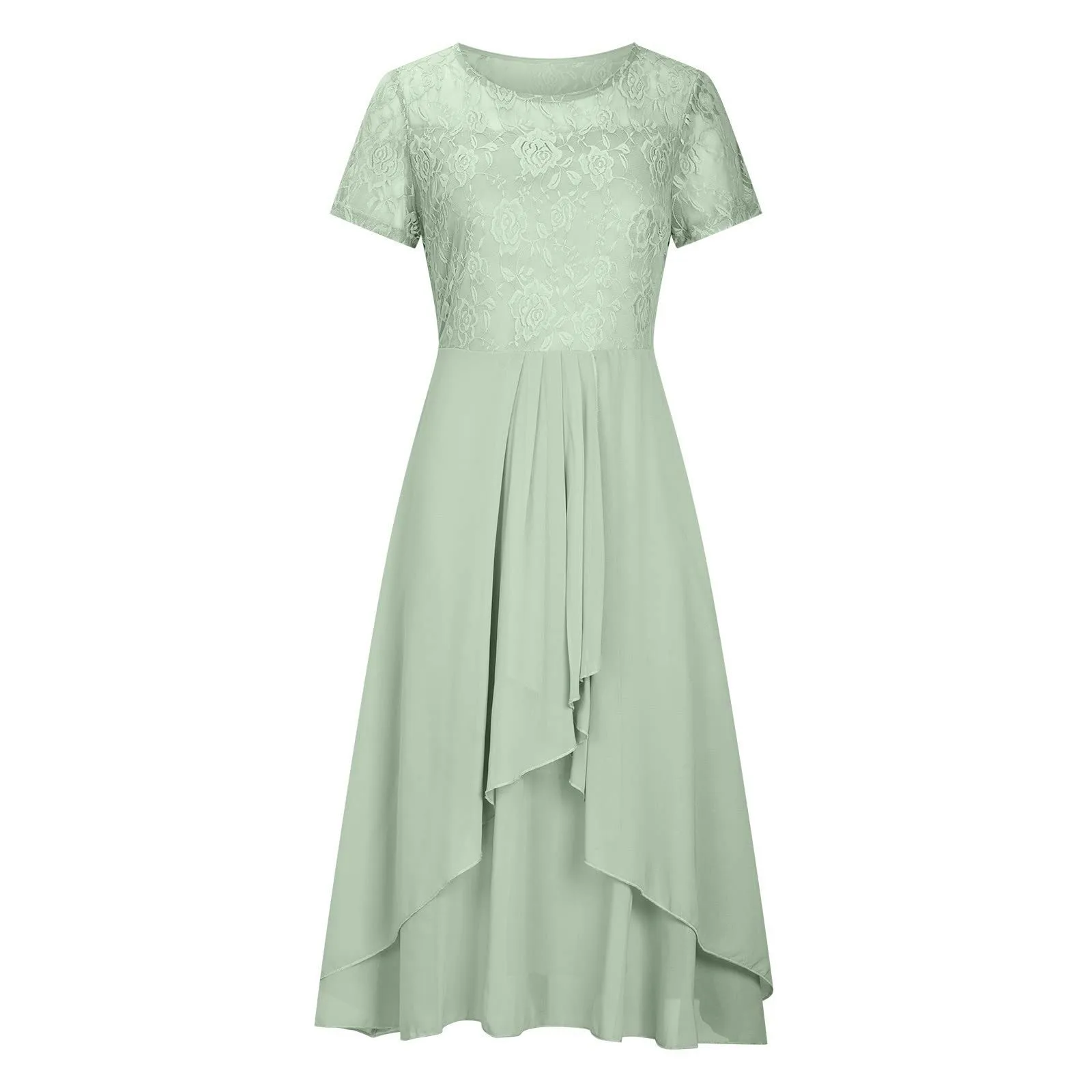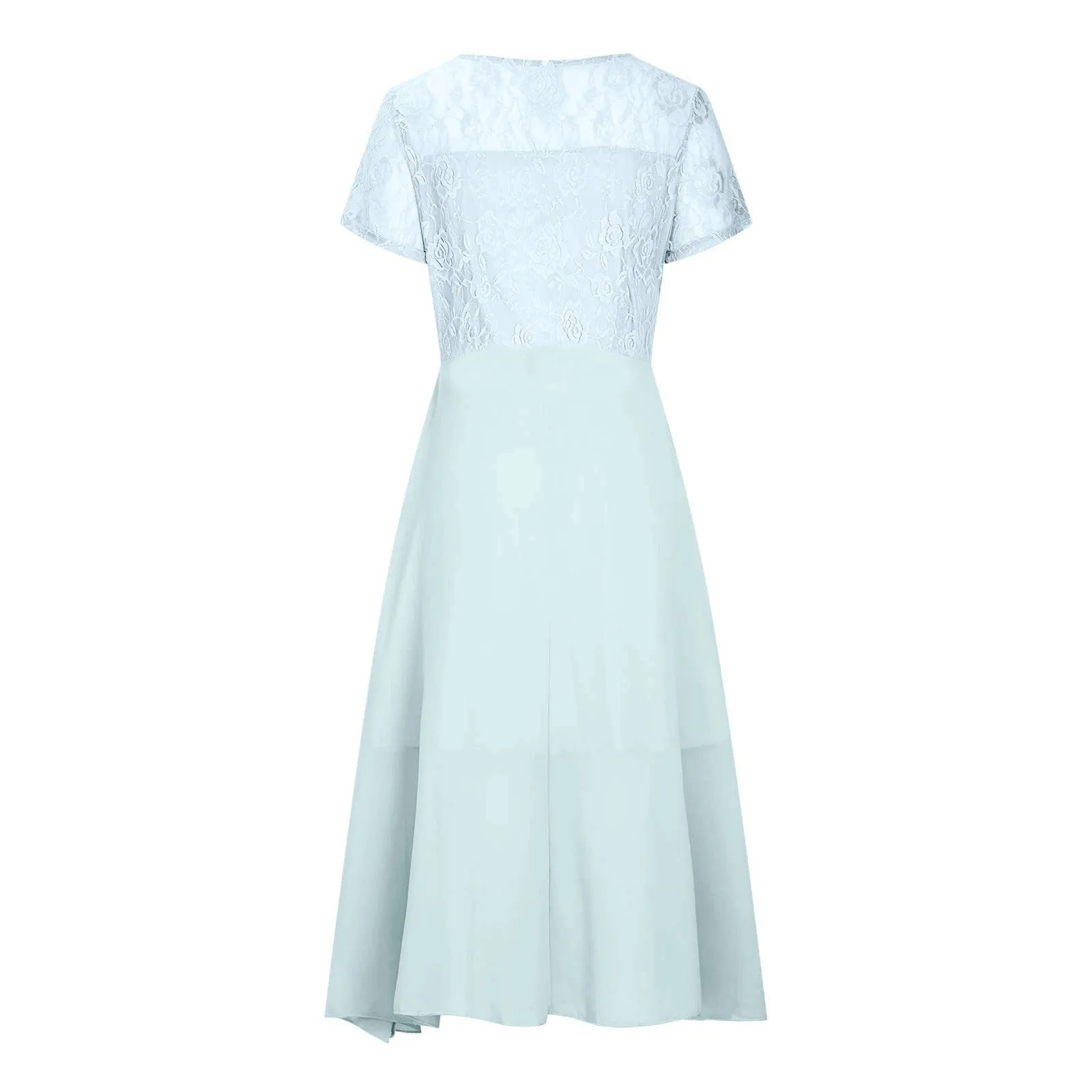 Women's Dress Chiffon Elegant Lace Patchwork Dress Cut-out Long Dress Bridesmaid Evening Dress