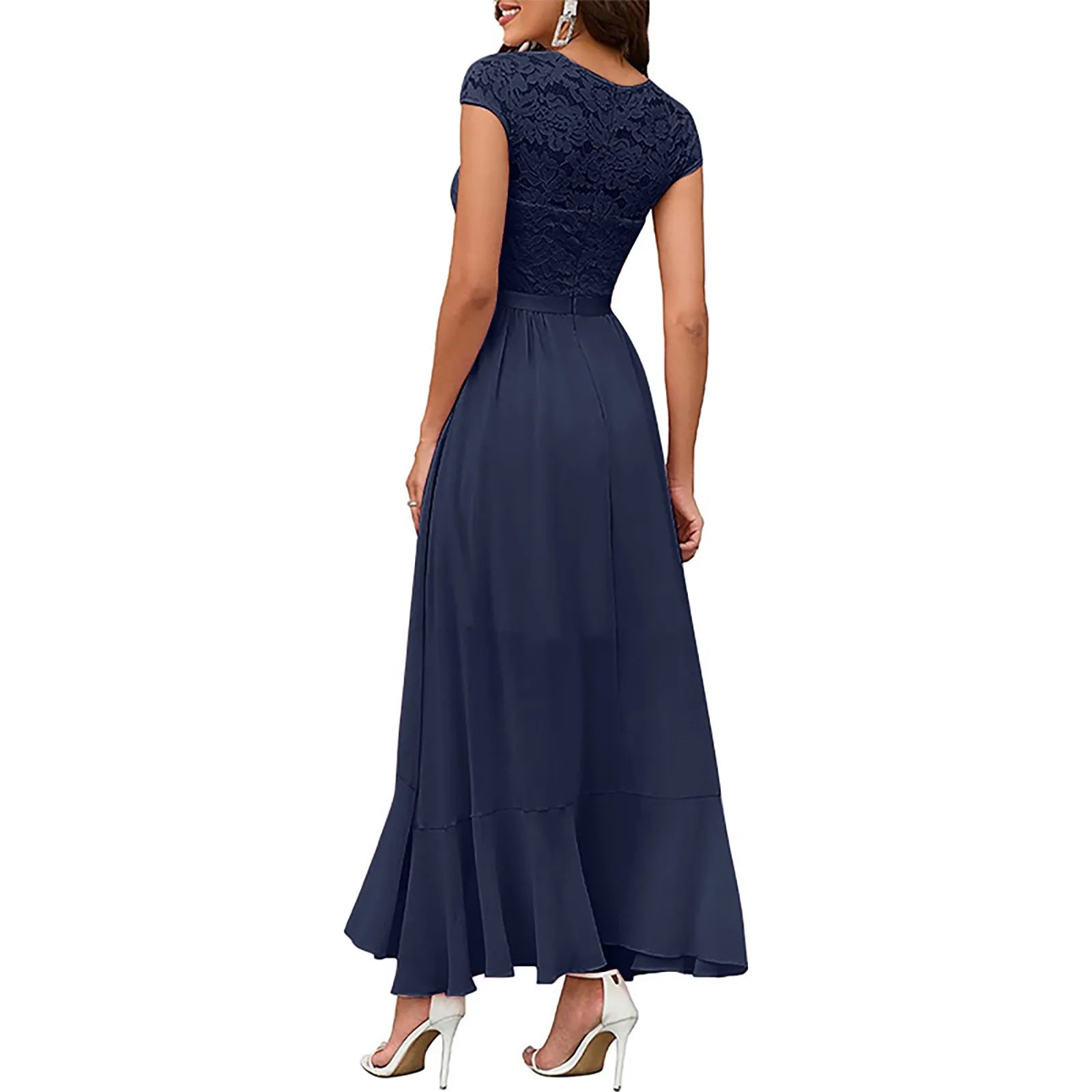 Womens Evening Party Wedding Bridesmaid Chiffon Lace Ball Gown Long Dress